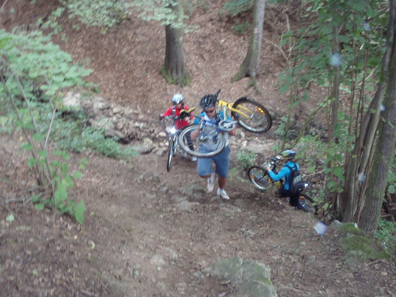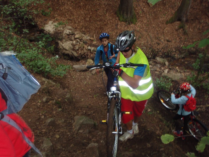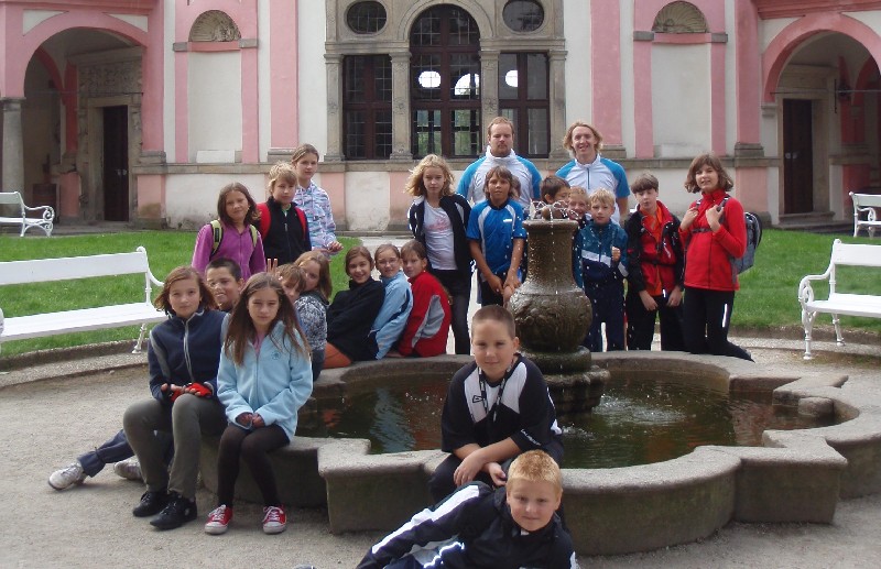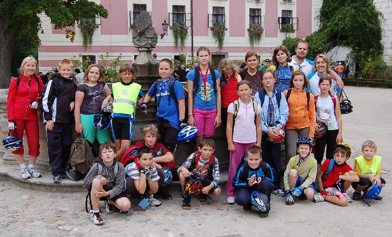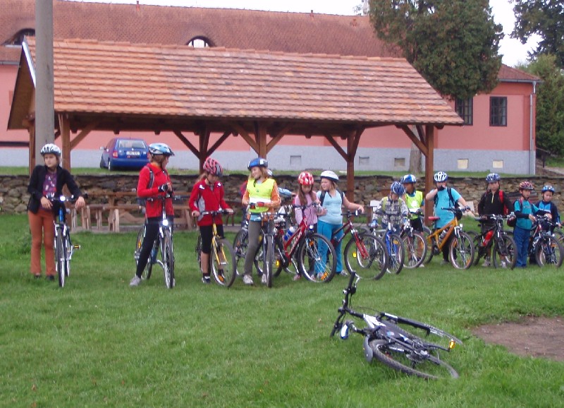 Máme za sebou prvních 26 km. První místo, které jsme navštívili byla Stráž nad Nežárkou. V místním zámku dlouho žila naše nejslavnější operní diva Ema Destinová. Pokračovali jsme po červené značce podél řeky Nežárky směrem na zámek Jemčina. Bohužel navigace se nějak zašmodrchala, nejprve jsme skončili pod prudkým kopcem, kde naštěstí pomocníci Ondra a Marek postupně všem vynosili kola a mohli jsme vesele pokračovat dál. Až na pár výtek: „ kdo to vymyslel?, to se nedá vyjít bez kola, natož s kolem...", vládla v mužstvu dobrá nálada. Když se zdálo, že máme vyhráno, cesta skončila u soutoku Nežárky s dalším potokem a most nikde. Nebudu nikomu prozrazovat, kdo výpravu naplánoval. Udělali jsme čelem vzad a už bez potíží, přes Plavsko a Hatín, kde jsme vykoupili místní hostinec, jsme po krásných silničkách dojeli k loveckému zámku Jemčina. Po důkladném občerstvení, delším odpočinku, venkovní prohlídce zámku jsme nakoupili pohledy a turistické známky. Vydali jsme se na zpáteční cestu přes Šimanov a znovu Stráž, tato cesta proběhla skvěle a bez komplikací. O půl páté jsme byli zpět v penzionu, někteří drobně unavení, ale většina ve skvělé náladě i kondici. Naše průměrná rychlost i přes náročné počáteční úseky 15 km/h.