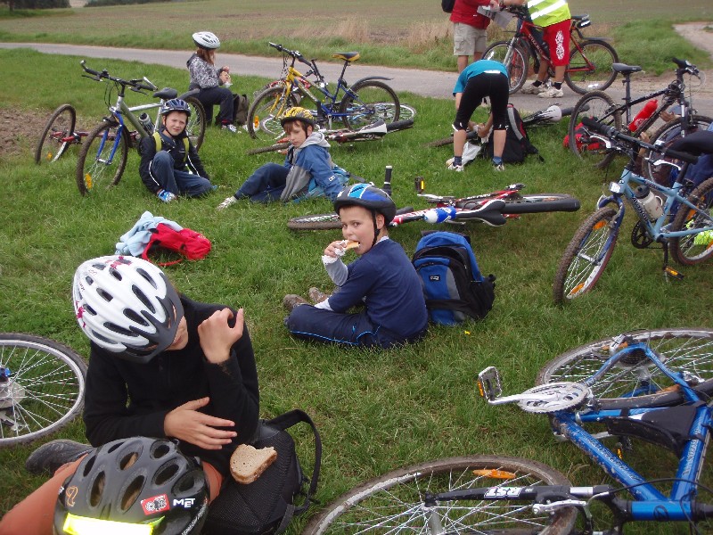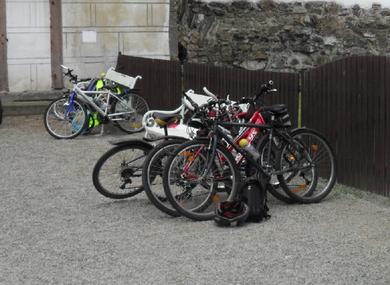 Máme za sebou celodenní výlet a můžeme zpívat:"sláva nazdar výletu nezmokli jsme a jsme tu". Během dne jsme na naše poměry urazili slabých 40 km, ale terén byl výrazně odlišný od těch předešlých. Vyjeli jsme nám již známou cestou přes Stráž nad Nežárkou do Plavska, první krátká zastávka na občerstvení, jak se později ukázalo velmi důležitá, protože před námi byla horská prémie první kategorie v obci Políkno. Na mapě to tak nevypadalo, ale ujeli jsme 6 km do strmého stoupání. Kde se tady vzal ten kopec, když pár kilometrů na jih je to jenom rovina? Nicméně těm zdatnějším to nedělalo žádné problémy a hbitě se drželi Ondry v háku, někteří jedinci chvíli tlačili. Po tomto stoupání, jak už to bývá, prudký a krátký sjezd. Nahoru půlhodinku, dole za 5 minut, jsme v Jindřichově Hradci. Před návštěvou zámku jsme se posilnili svačinou. Následuje procházka městem a rozchod na nezbytný nákup a zmrzlinu. Prohlídka úzkorozchodné dráhy, váháme zda se svézt do Nové Bystřice, nakonec rozhodlo počasí, začíná se to kabonit, takže co nejrychleji zpět do Pístiny. Jenže cesta kolem Nežárky není docela bez problémů, nejprve cros country k řece, potom krásná cyklotrasa, ale ouha v Horní Lhotě pohoda končí. Musíme polní cestou do kopce plnou záludných louží a bahna, ale i tuhle překážku zdoláváme hravě a pak už přes Vydří a Plavsko do Stráže a v 17 hodin jsme zpátky v penzionu.