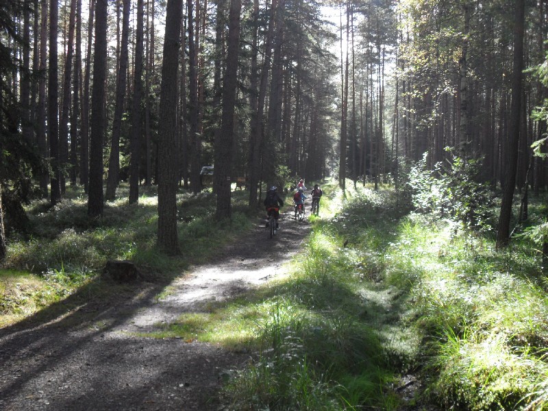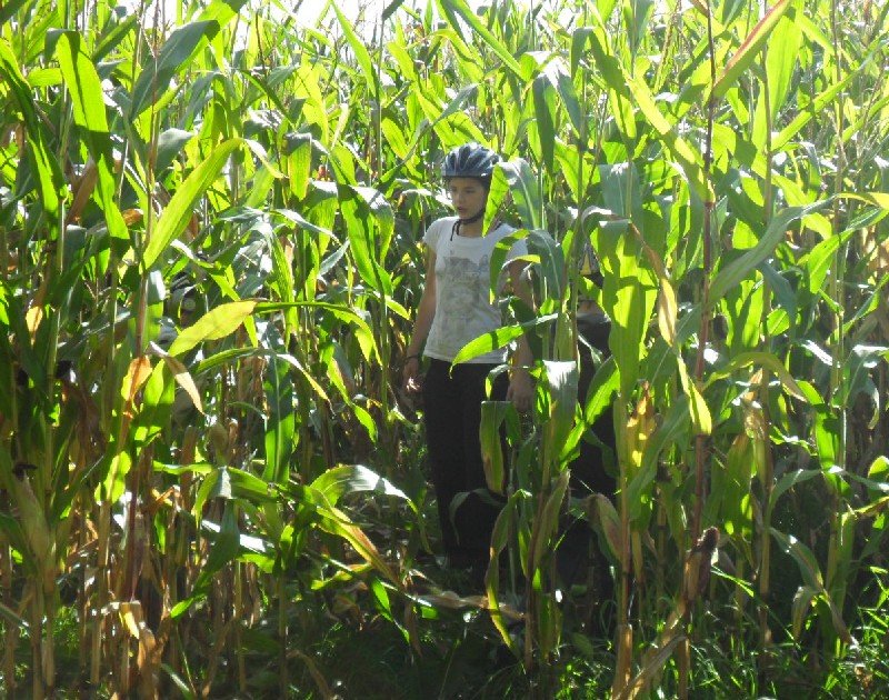 Dopoledne, pouze pro protažení svalů, krátká vyjížďka do okolí. Jedeme po polní cestě kolem ohrady s daňky, následuje další ohrada, kde jsou krávy, potom ovce. Prostě malá zoologická zahrada v přírodě. Po polní cestě do Stříbrce, otáčíme se po červené směr na Stráž a přijíždíme k penzionu Bašta, kde na nás čeká další překvapení - opět ohrada s daňky, stádo nejméně 50 kusů. Kolem penzionu pobíhají krůty, perličky, skupina pávů, slepice a další havěť. Někteří sbírají popadaná péra této drůbeže. Jedeme po lesní dálnici, která končí úzkou pěšinkou, plnou kořenů a bláta, následuje oblíbená jízda terénem, proložená občasným pádem do bláta. Zastavujeme se na sluníčku u pole s kukuřicí, někteří se dopouští polního pychu. Užíváme si zastávky a sluníme se. Následuje nudná cesta po krásných polních cestách do penzionu. Ujeli jsme slabých 12 km. Cyklisté si užívají odpočinek, odpoledne se chystáme na závěrečnou etapu naší Pístina tour kolem rybníka Rožmberk.