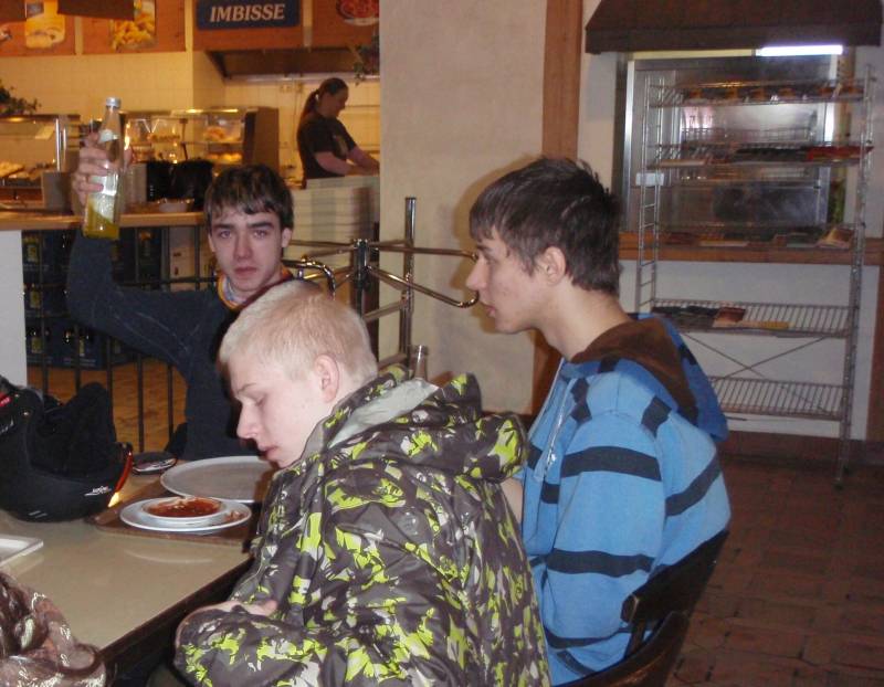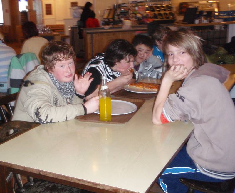 V poledne se všechny družstva schází v bufetu, tentokrát je potřeba utratit poslední peníze, takže pizza a hranolky jdou na dračku. Po důkladném odpočinku a výměně rukavic pokračujeme v lyžování. Končíme před třetí hodinou, jednak začínáme být všichni navlhlí, ale hlavně jednička hlásí úraz. Naštěstí, jak se nakonec ukázalo, nešlo snad o nic vážného, pro jistotu raněného dopravujeme ještě večer k rodičům a do Prahy na rentgen.