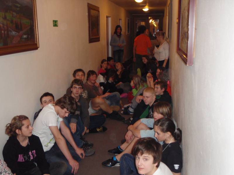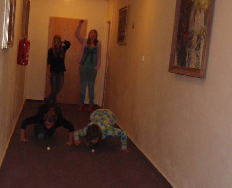 Budíček, čtyři pokoje i přes buzení tvrdě spí je potřeba znovu je vzbudit před snídaní. Asi se projevily následky první probdělé noci a možná i trochu únava a zdravý horský vzduch.