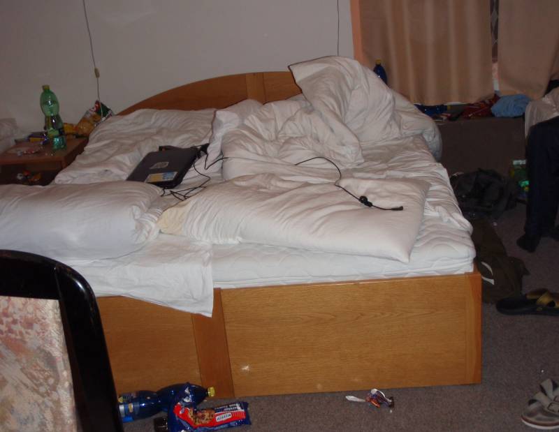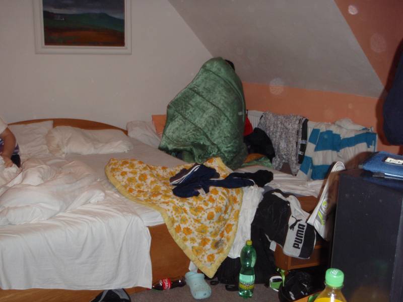 Budíček v 7:30, v 8:00 snídaně. Balení a úklid, někde obojí trochu bolelo.