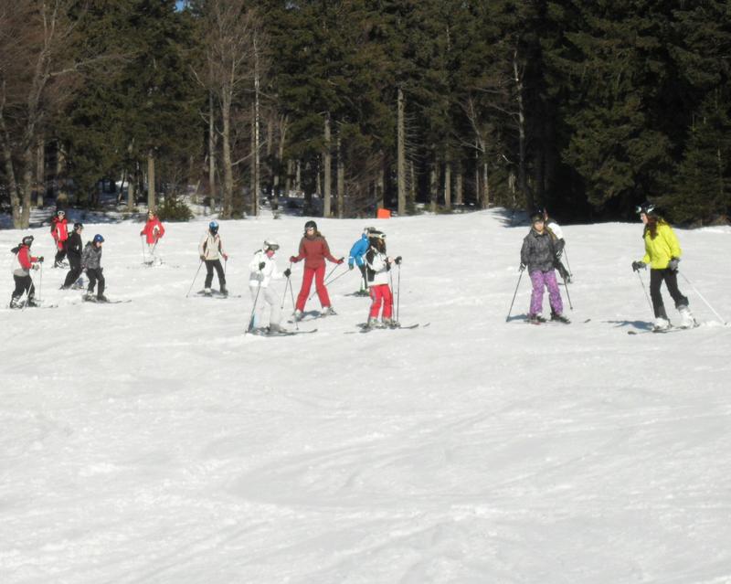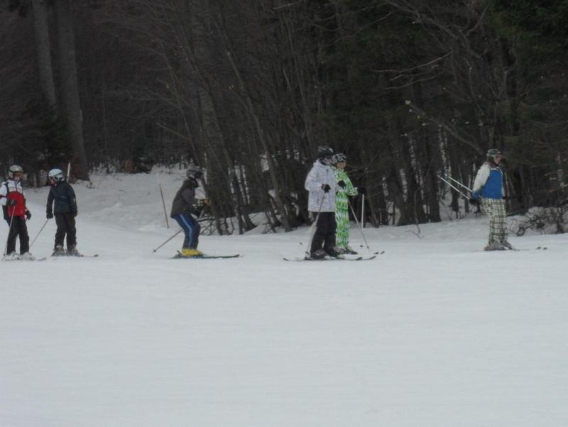 Po dvou hodinách odpočinek, polovina mužstva svačí u autobusu, druhá obsadila místní restauraci, hitem dne je pizza. Po obědě opět na svah. Začíná drobně sněžit a v některých partiích vydatně fouká a je mlha, ale i začátečníci zvládají přesun na další svah pomocí kotvy. Ostatní družstva postupně zkouší další sjezdovky.
