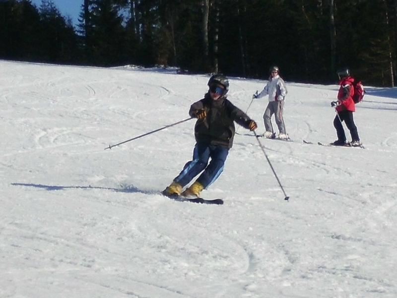 My vyrážíme vstříc poslednímu dnu lyžování, posíleni o nové neopotřebované a psychicky silné instruktory, kteří nahradili Jirku s Tomášem. Po počátečním brblání si užíváme lyžování, sice v mírném vlhku, ale rozhodně v lepších podmínkách než včera, sjezdovky výborně upraveny.