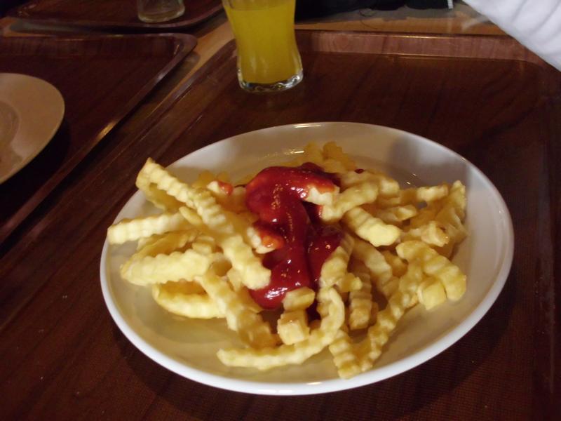 V 18:15 večeře, výběr z několika jídel. Na celé čáře vítězí hranolky, zřejmě mají naši svěřenci nějaký hranolkový dluh, dámy udržující linii si dávají zeleninu, zase jich není tolik.