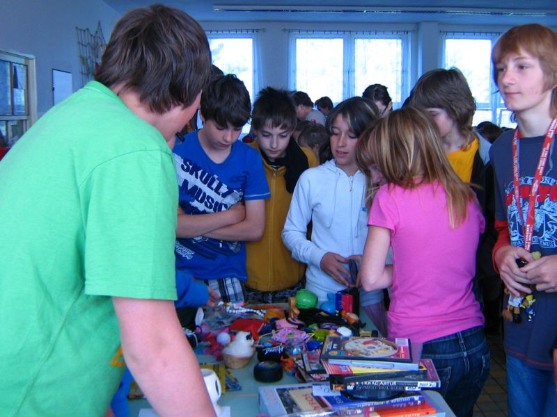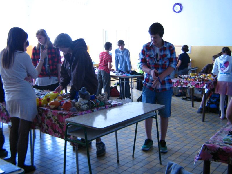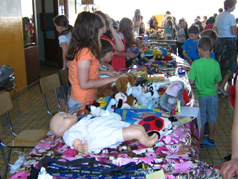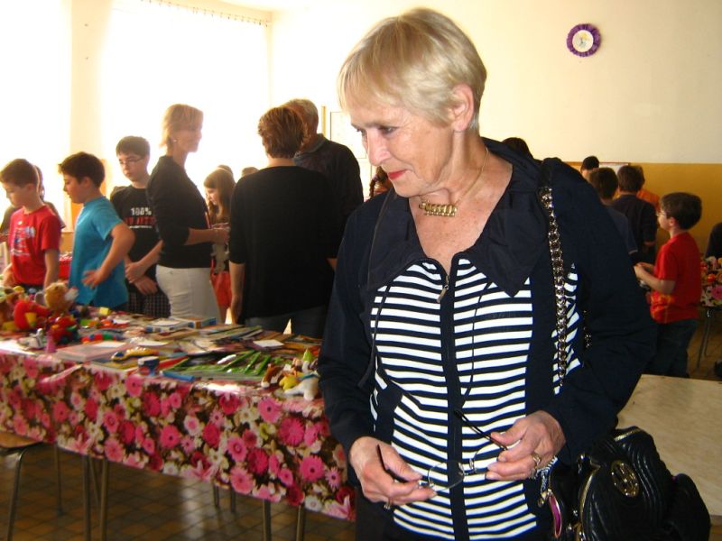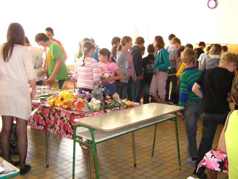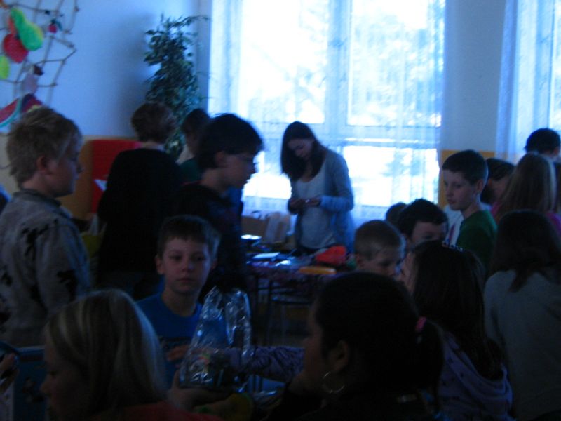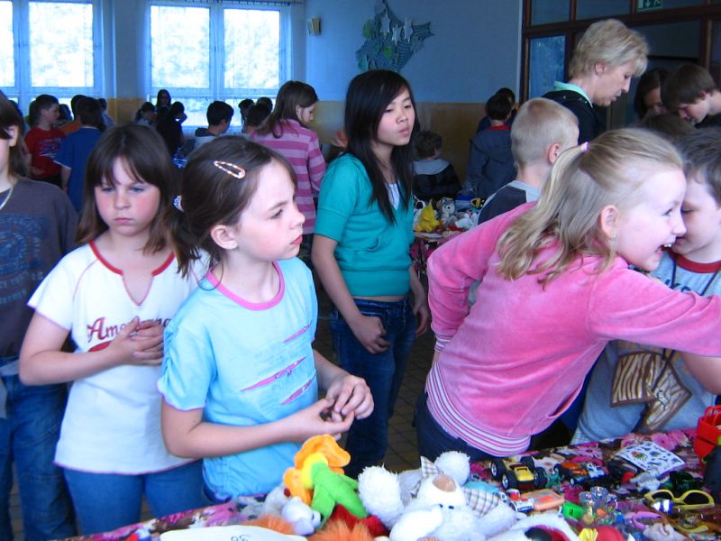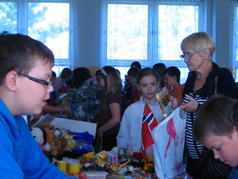 Žáci téměř všech ročníků a i učitelé přinesli z domova různé věci, vyložili je po stolech ve školní jídelně a následně si je zase zájemci nakupovali. Tuto akci opět navštívila paní Běla Gran Jensen, představitelka hnutí Na vlastních nohou - Stonožka, která přivezla několik věcí do prodeje a sama si také nakoupila. Nejúspěšnějšími třídami, které vydělaly u svých „stánků" nejvíce, byly 4. A s 1 482 Kč a 4. B s 1 251 Kč. Celkem jsme takto získali 12 852 Kč.