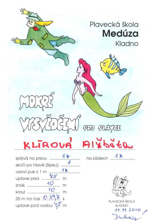 Ve čtvrtek 11.11.2010 ukončili žáci druhých ročníků kurz oplavání v Plavecké škole Medúza Kladno.