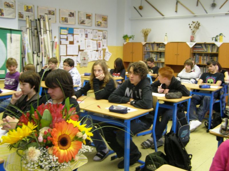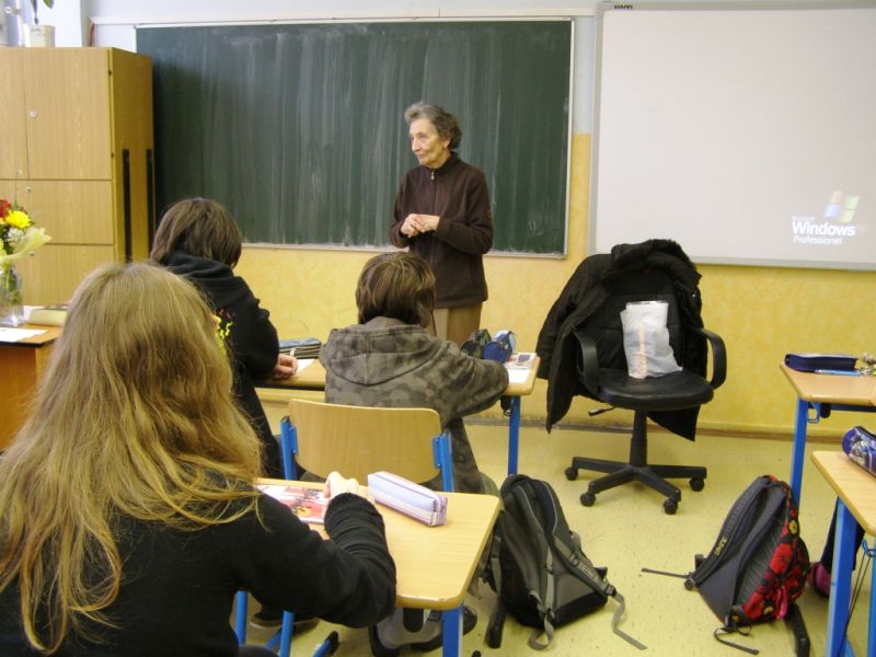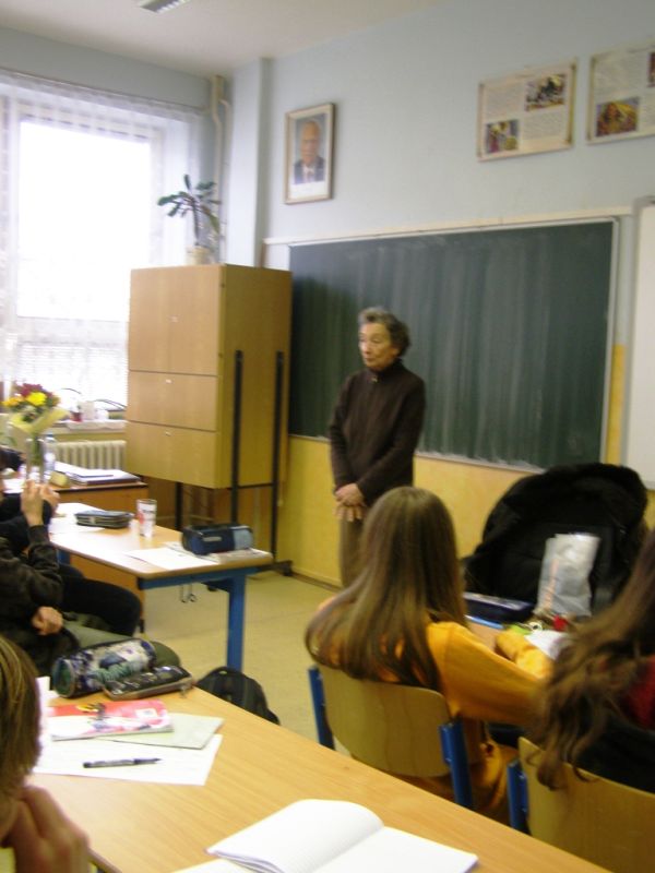 Paní Havlůjová velmi emotivně vyprávěla o svém nelehkém osudu a o tom, jak jí víra pomohla překonat veškerá úskalí, která zažila během komunistického režimu. Pár zvídavých žáků paní Havlůjové položilo několik otázek, jimiž byla beseda v přátelském duchu zakončena. Při velkém potlesku jí dvě žákyně předaly kytici jako poděkování za milou návštěvu a poutavé vyprávění.