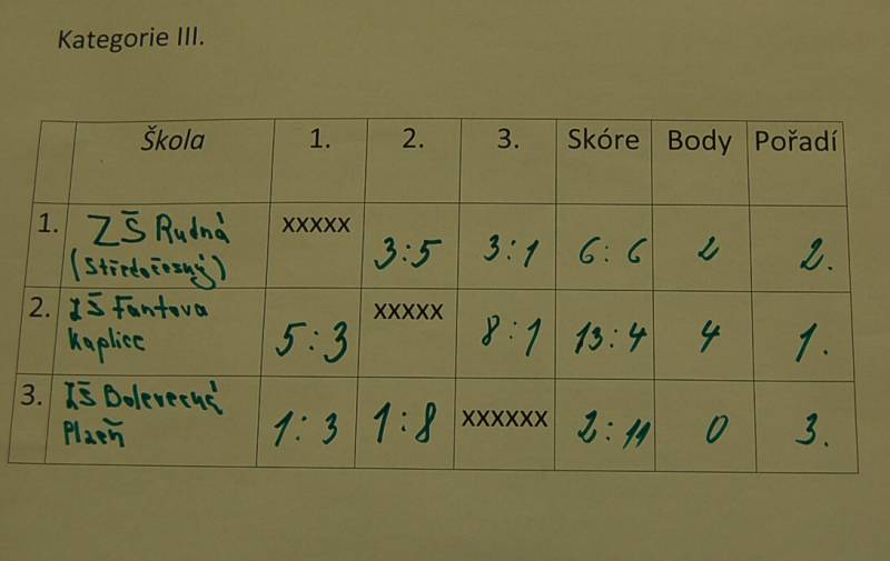 ZŠ Rudná - ZŠ Bolevecká Plzeň 3 : 1