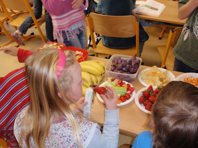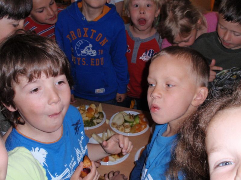 Děti si přinesly zdravou svačinku a množství ovoce a zeleniny. A pak už jsme jen mlsali, ochutnávali, očichávali, poznávali a užívali si spoustu legrace. Všechny děti odcházely s plnými bříšky a se zjištěním, že pochutnat si můžeme i zdravě bez sušenek a bonbónů. Dokonce nám i zbylo na další den. Děkujeme všem pečlivým maminkám za vzornou přípravu dobrůtek.