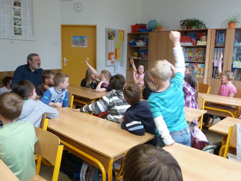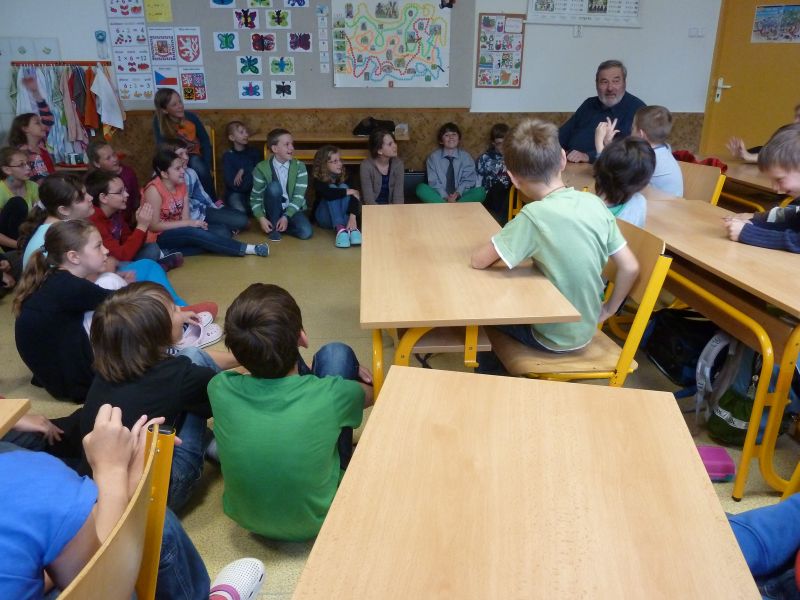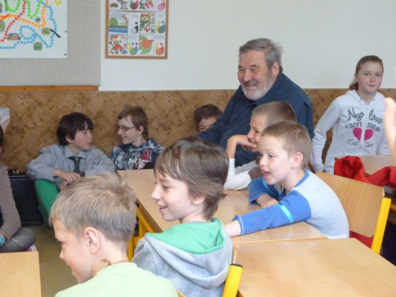Ve čtvrtek 30. 5. 2013 se žáci 2. C a 5. A měli možnost na své akci „Čteme mladším dětem“ setkat s básníkem, spisovatelem, autorem textů písní a rozhlasovým reportérem panem Františkem Novotným.
