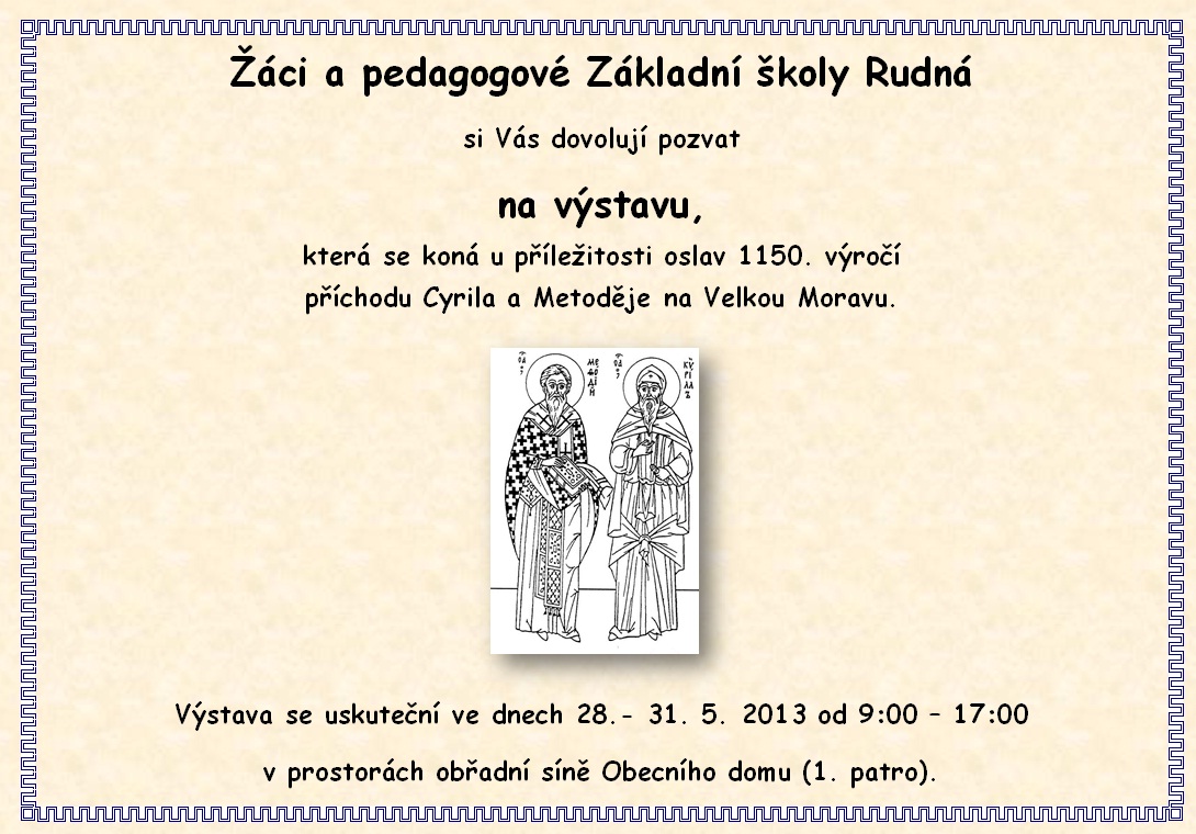 Pozvánka na výstavu - Příchod Cyrila a Metoděje na Velkou Moravu