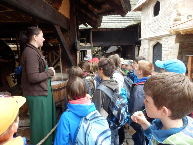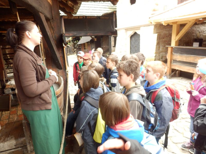 Nedaleko Lysé nad Labem se nachází středověká vesnička a v ní množství středověkých mistrů. Máme tu mistra provazníka, mistra cechu kamenického, mýdlařského, ale i svíčkaře, tkadlenu a mnoho dalších. Naše prohlídka se skládala ze dvou částí – nejprve jsme si o každém řemeslu něco pověděli a předvedli, jak se co dělávalo, a pak už nás čekala část, kdy si děti po rozchodu po areálu mohly některá řemesla vyzkoušet.