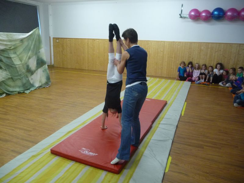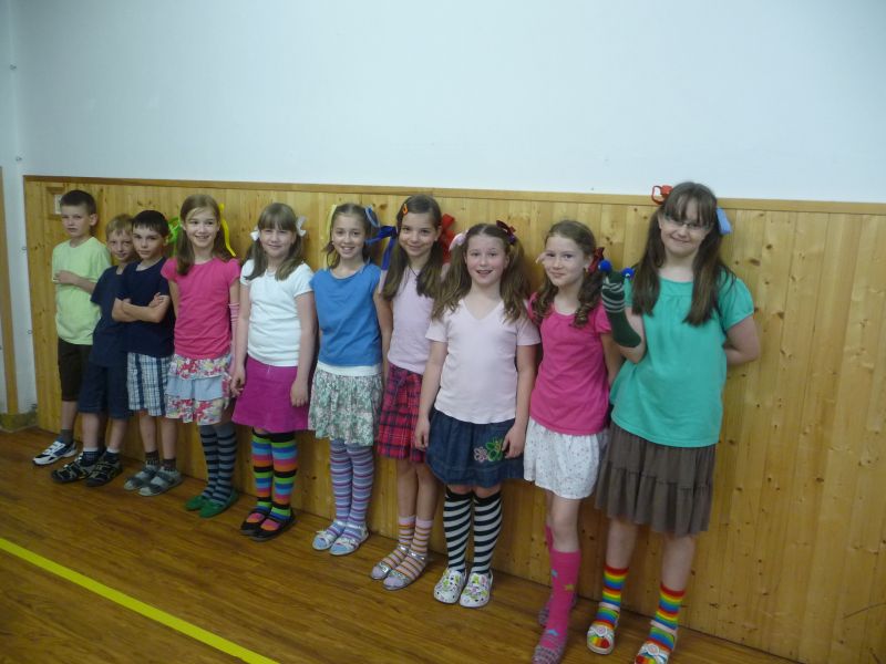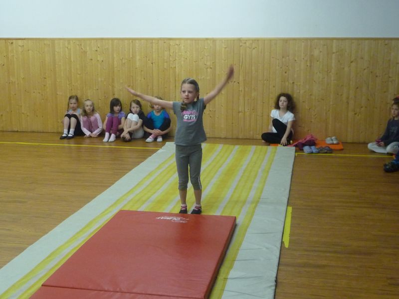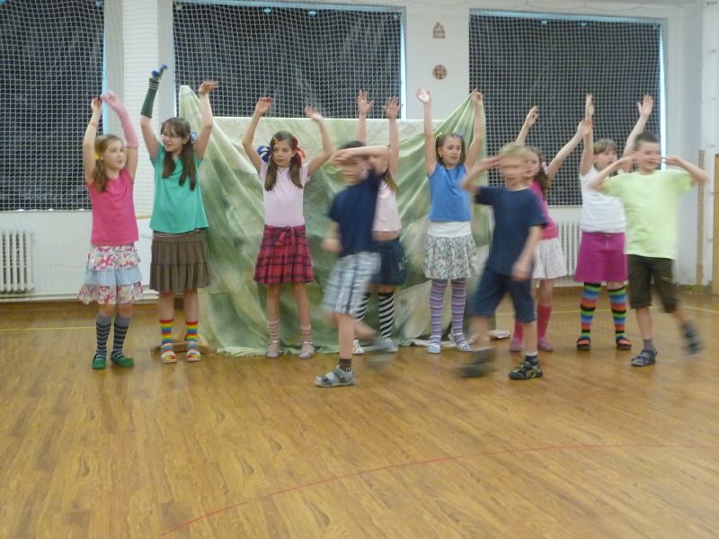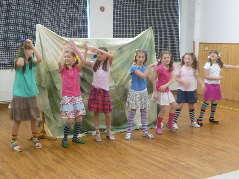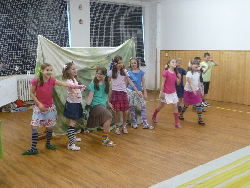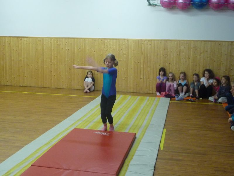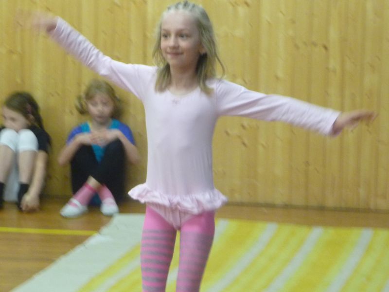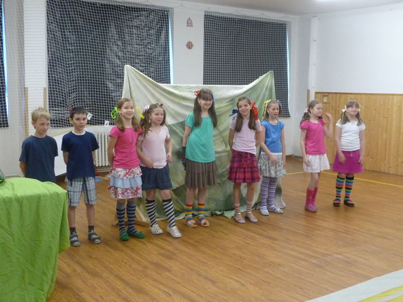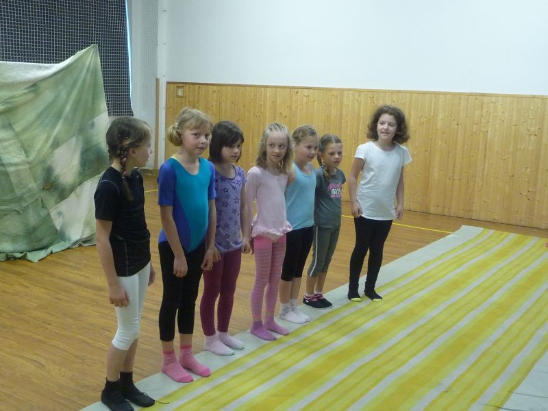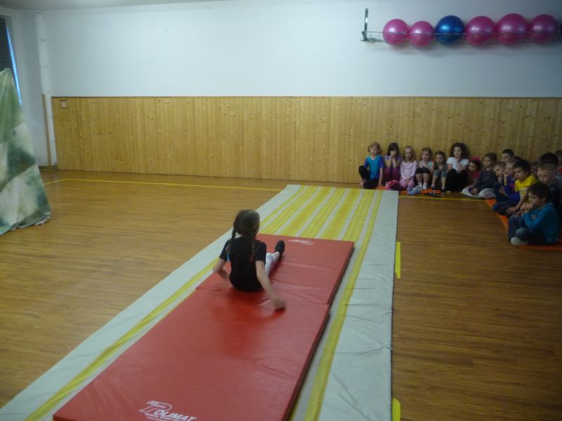 Po skončení vystoupení dramatického kroužku se také představily dívky z kroužku gymnastiky. Sestavu s hudbou předvedly: