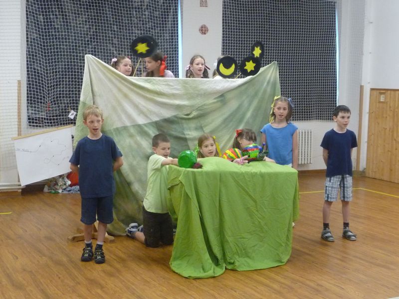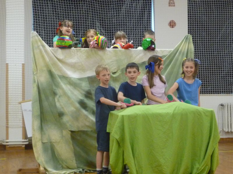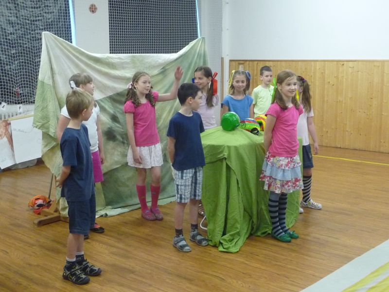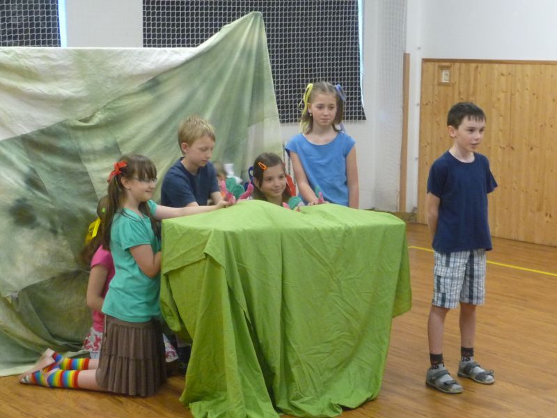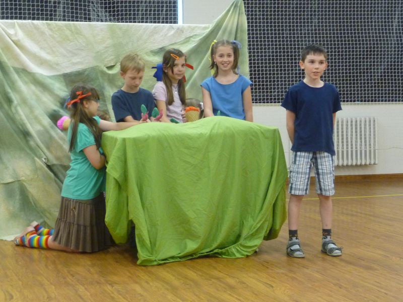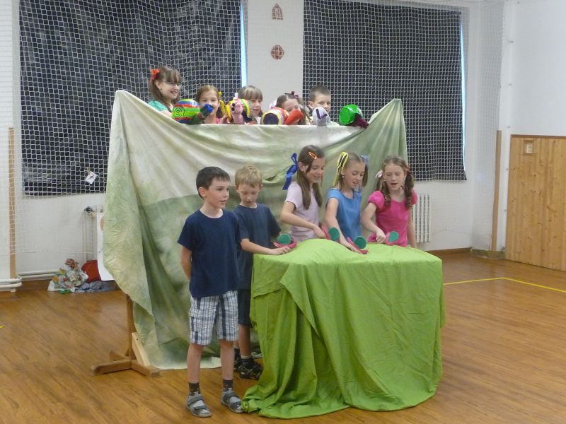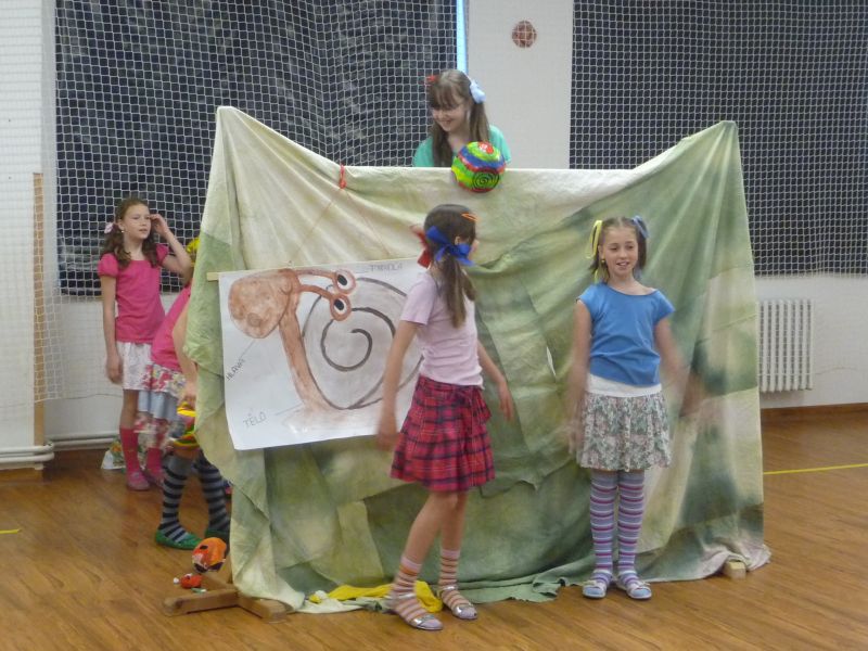 5. června vystoupily děti z dramatického kroužku s představením Jak se mají hlemýždi?