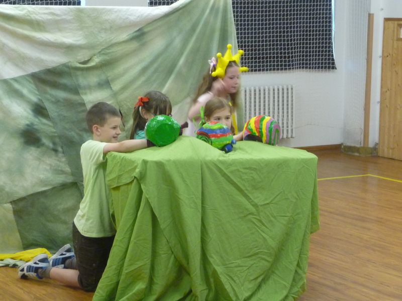 Připravovali jsme se celý rok, nejdříve jsme formou her a improvizací zkoumali hlemýždí život, posléze vyráběli loutky a šneččí miniscénu a rozehrávali vlastní šnečí příběhy, jejichž střípky byly v konečném vystoupení také zařazeny.