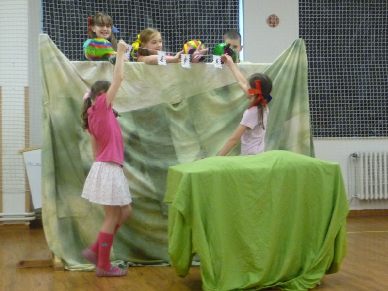 Celkem jsme odehráli tři vystoupení. Dopoledne během vyučování jsme pozvali žáky 1.-3. tříd na dvě představení, odpoledne jsme potěšili naše rodiče.