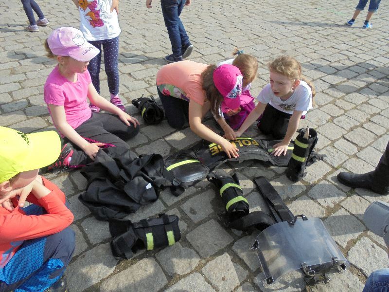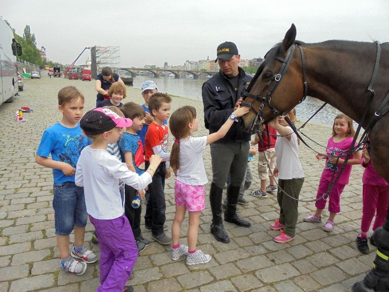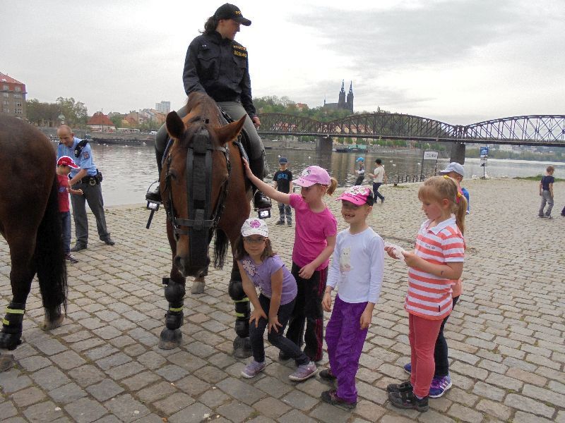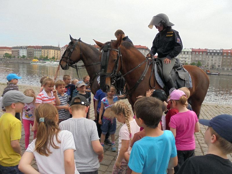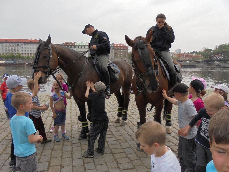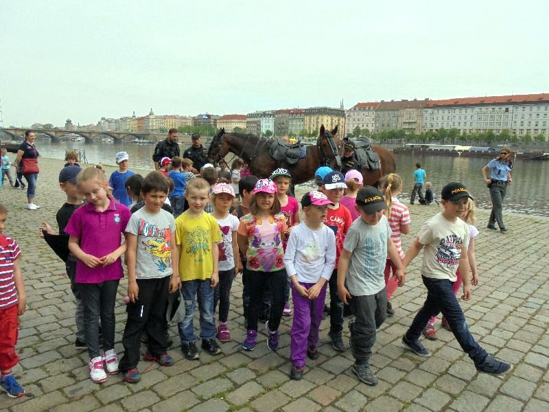 Při návštěvě policie jsme viděli ukázky výstroje a výzbroje policisty při různých akcích. U Vltavy se děti seznámily s lodí městské policie, do které se mohly i podívat. Na závěr našeho poučného výletu pro nás byla předvedena práce policejních koní. Všemi ukázkami jsme byli nadšeni a do školy jsme se vraceli s drobnými dárky od policistů a hlavně plni hezkých zážitků.