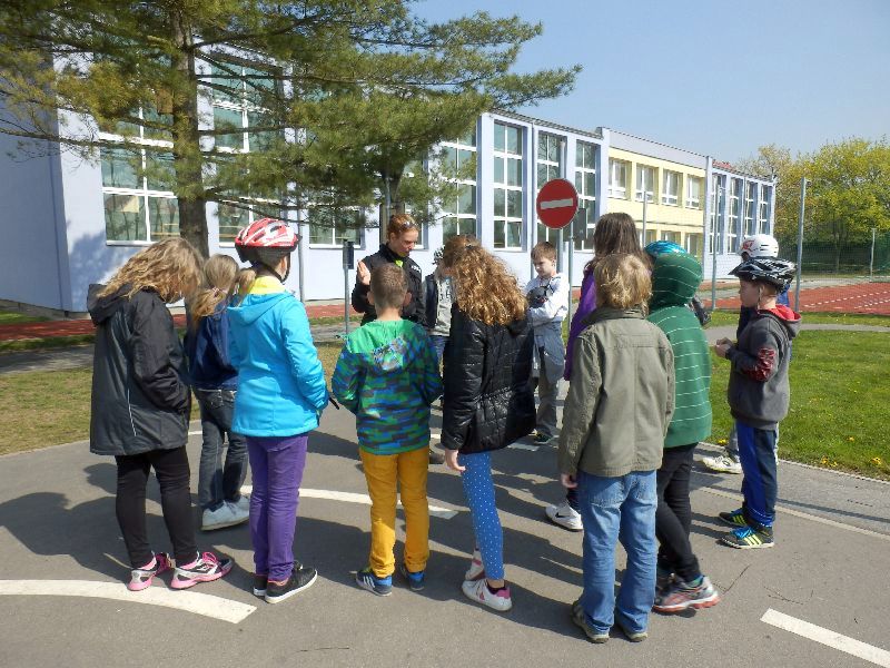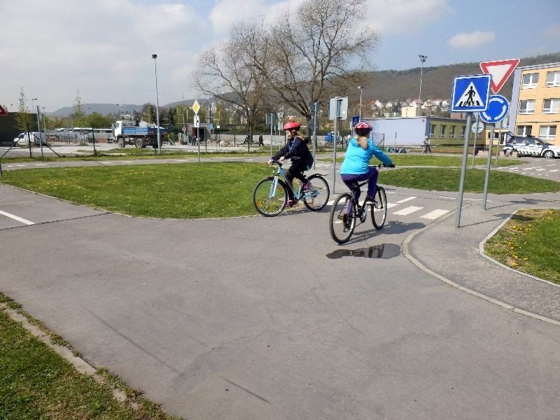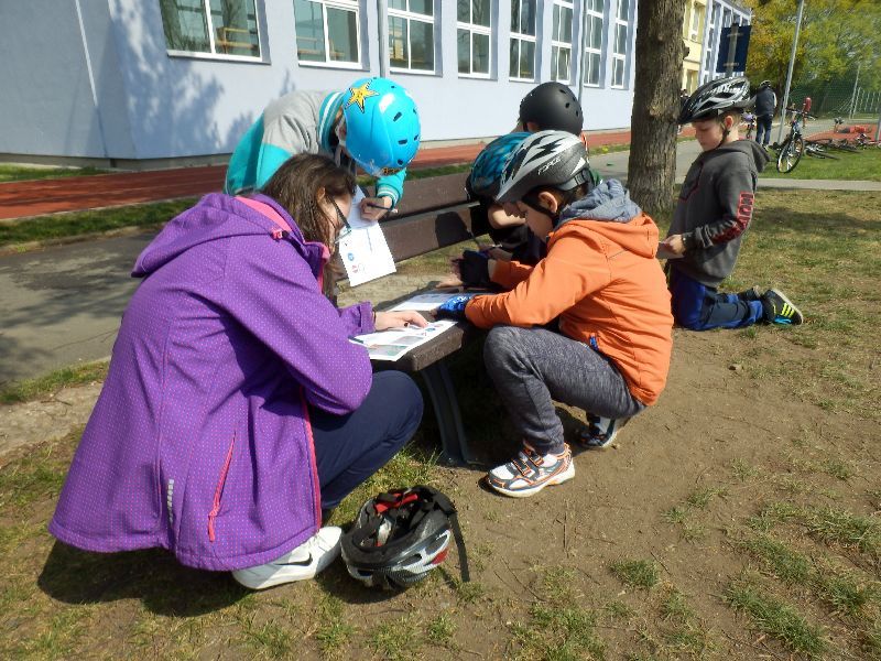 Páťáci pod přísným vedením paní policistky prošli testem dopravních značek, absolvovali jízdu obratnosti mezi překážkami, zvládli nerovnosti terénu i nástrahy, které na ně číhaly na semaforech, hlavních a vedlejších silničkách i jednosměrkách. Všichni si vysloužili drobné odměny a ti nejlepší nás budou reprezentovat v květnové soutěži dopravní výchovy. Uvidíme…
