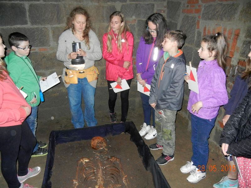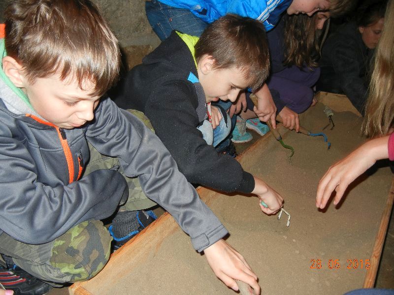 Jen v květnu byl připraven animační zážitkový program, který si naše děti zkusily na vlastní kůži. Nikdo se nebál vstoupit do nejtemnějších koutů muzea, každý si domů něco odnesl na památku. Všichni si vyzkoušeli práci archeologa, historika, speleologa. Každý viděl opravdovou kostru, otestovali jsme detektor kovu, poznali jsme co je archeologické síto, odhalili jsme tajemný nápis a prohlédli jsme si nejcennější nálezy severních a středních Čech.