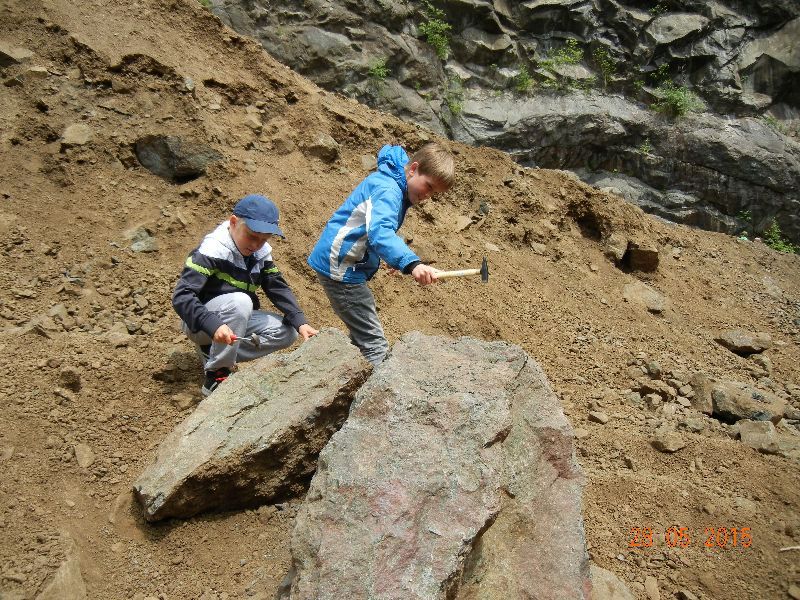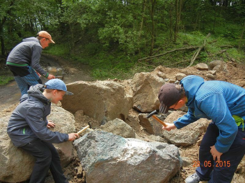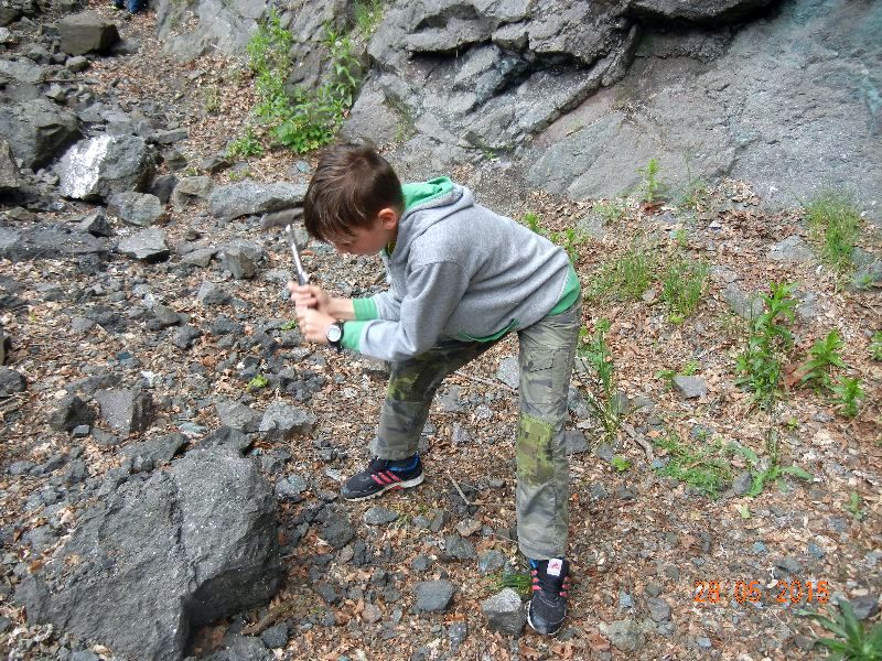 Pak už huráááá do lomu Kozákov. Pomocí kladívek se všem klukům i holkám podařilo objevit větší nebo menší polodrahokamy a překrásné kameny a kamínky.