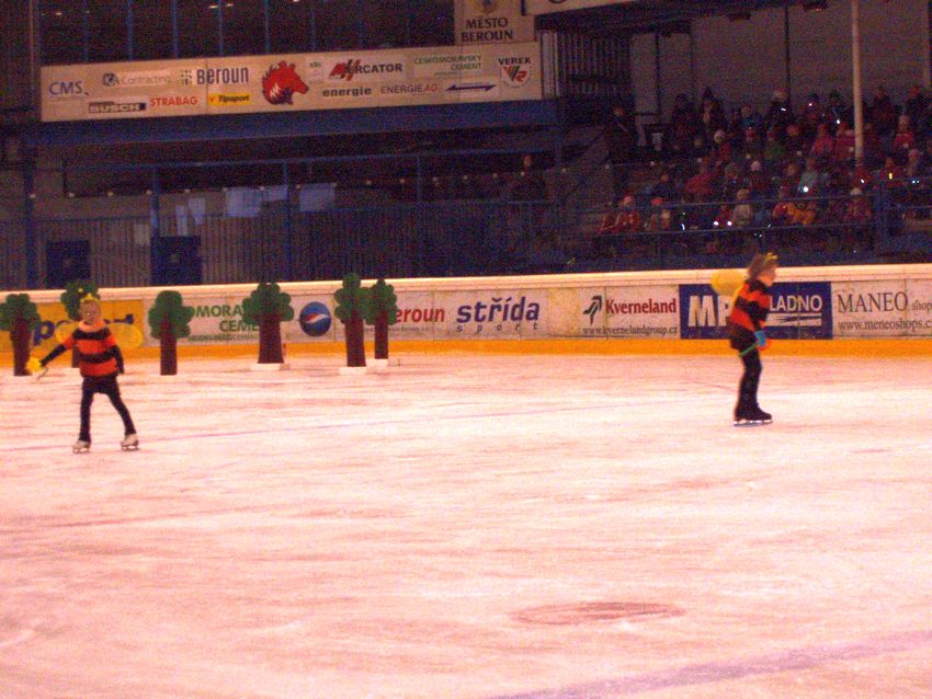 Páteční dopoledne strávily děti ze 3. A  na zimním stadionu v Berouně. Zde totiž probíhala vánoční  exhibice  na ledě.  Malí krasobruslaři předvedli své umění v pohádce O Sněhurce  a  také v pohádkách z Večerníčků. Jednou z účinkujících  byla i naše žákyně Kamila  Pragerová, která se předvedla v roli trpaslíka a v pohádce  O včelích medvídcích. Velké poděkování patří paní Pragerové, která nám celý výlet  zabezpečila.