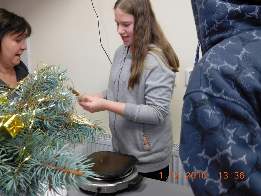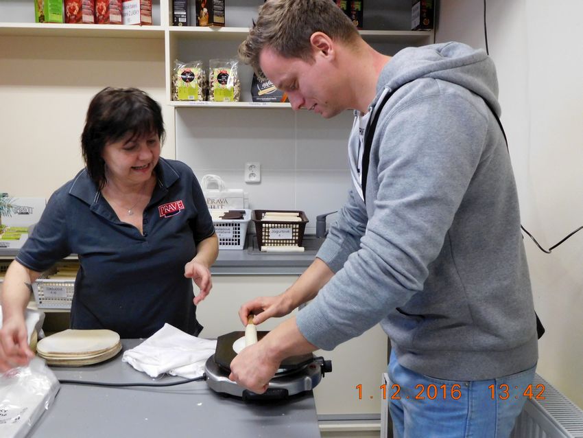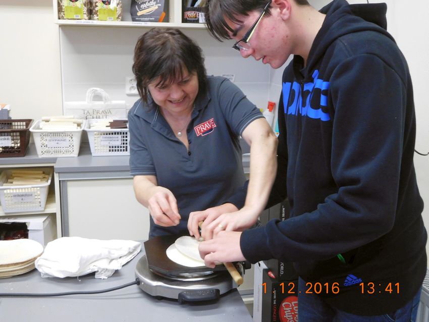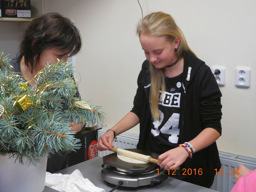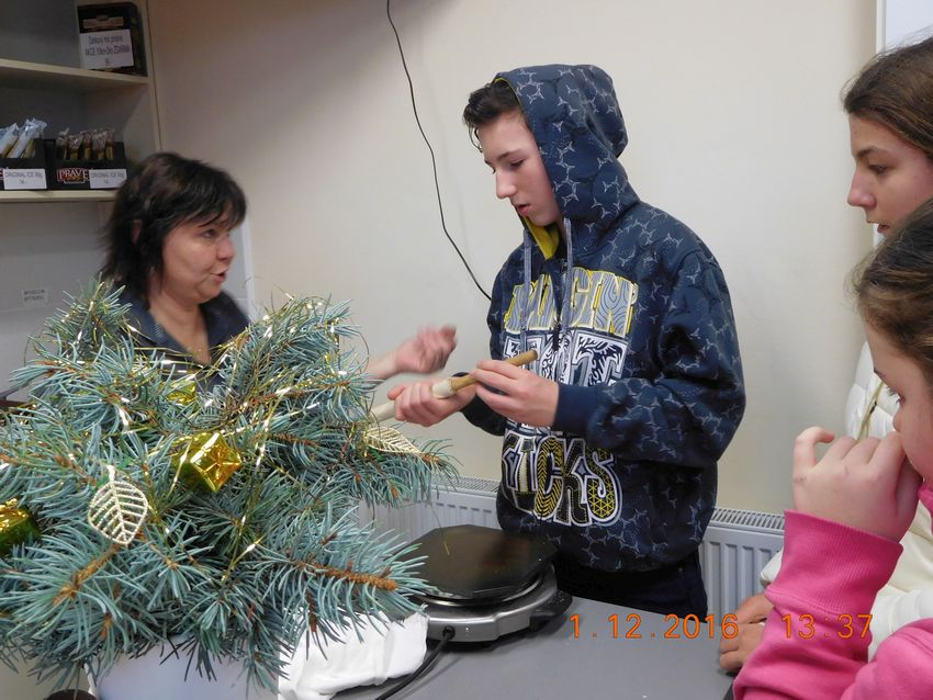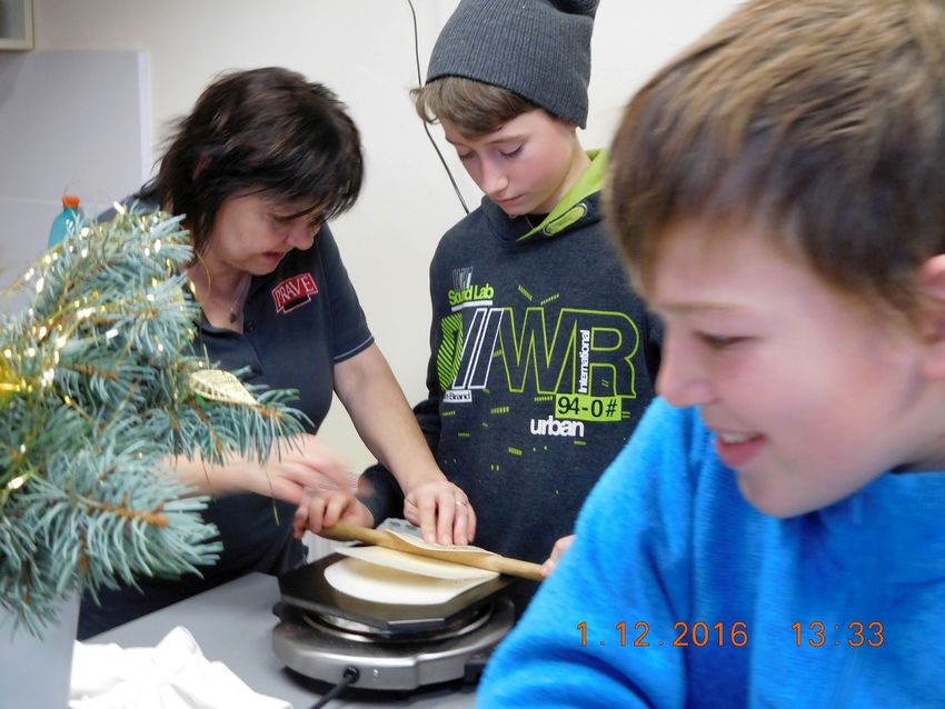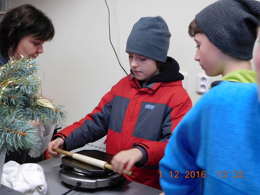 Exkurze nám umožnila získat nové informace. Mohli jsme si vyzkoušet svou šikovnost. Ono totiž z tenoučké 1 mm silné placky stočit trubičku a nespálit se u toho, není jen tak. Aby nám cesta autobusem rychle uběhla, sledovali jsme dva filmy. Někteří možná doma těžko vysvětlovali, proč mají zmáčené oblečení a mokré boty. Ale do sněhu a čvachty se holt vlézt musí. Vždyť není vůbec jisté, kdy se v okolí Rudné sněhu dočkáme. Možná, že letos bude vše jinak a nejen adventní období, ale i Vánoce, budou po letech zase bílé. Krásné prožití tohoto období všem!