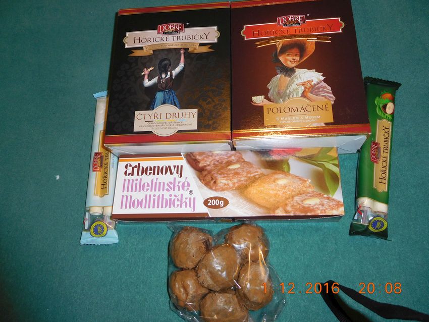 Krátkou zastávku jsme ještě udělali na náměstí v Miletíně. Tam jsou dvě proslulé cukrárny, které vyrábějí další regionální specialitu, a to tzv. modlitbičky (perníkové obdélníčky o rozměrech zhruba 7x5 cm, plněné směsí ořechů, polité cukrovou polevou, zdobené mandlí). Opět mnozí nakoupili jako dárek.