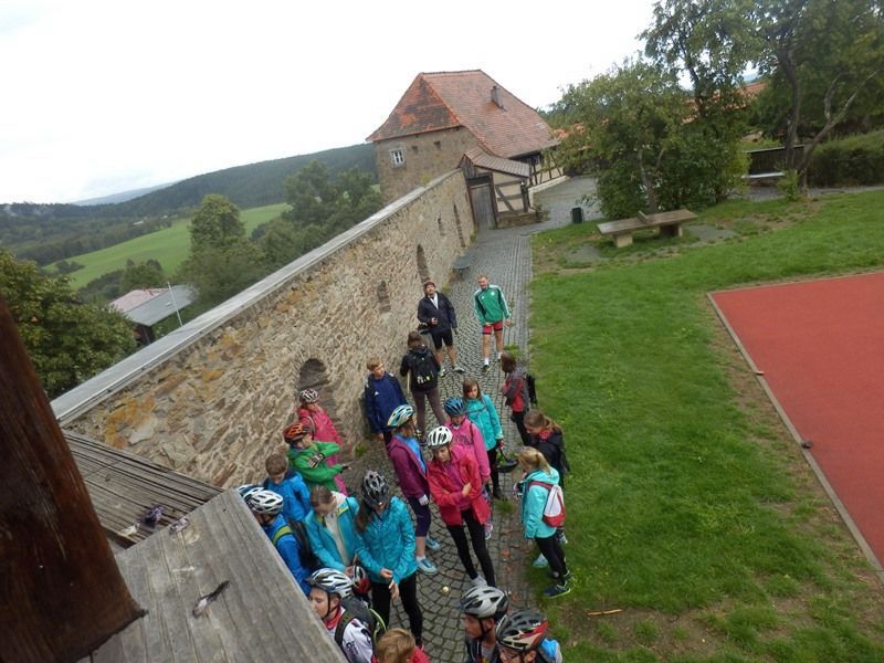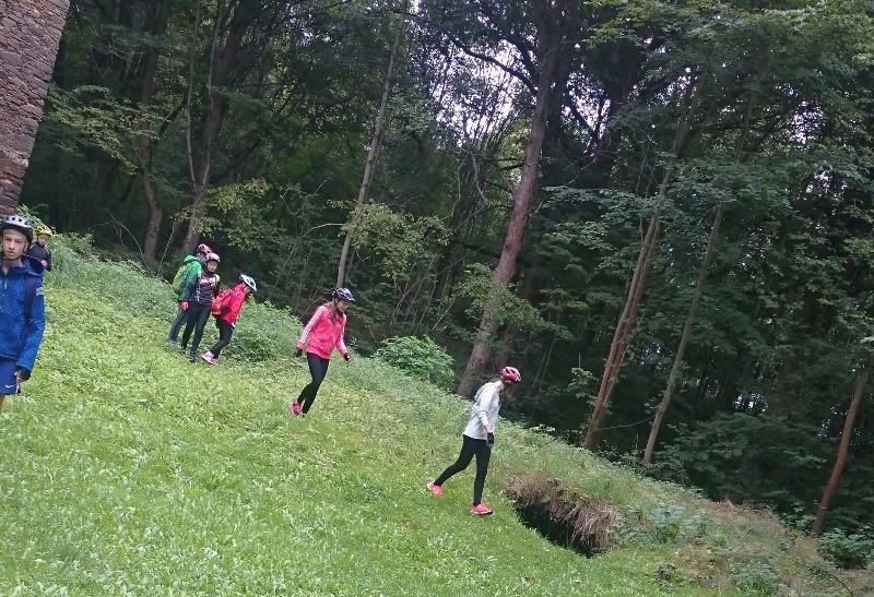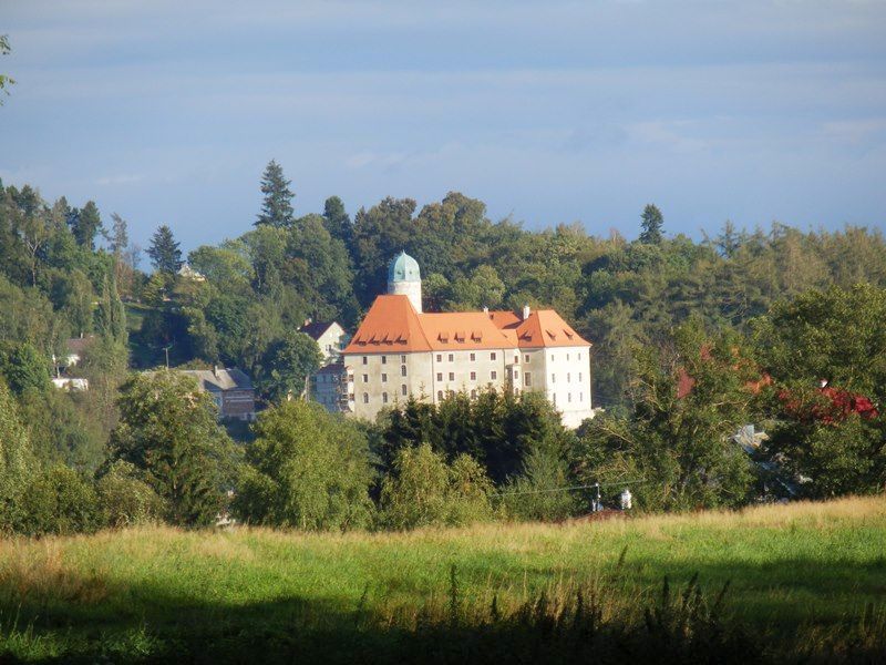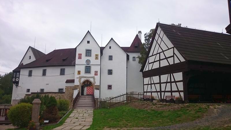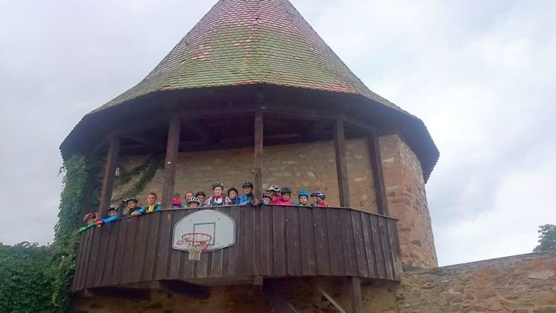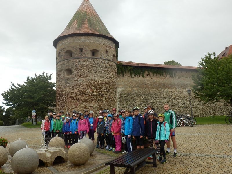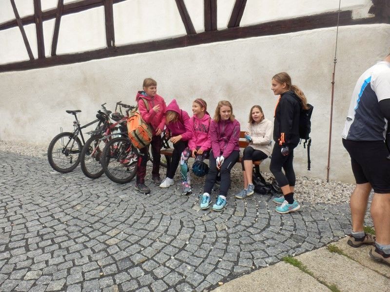 Po krátkém odpočinku a vybalení věcí se vydáváme na první výlet. Překonáváme první drobné obtíže, už první den při jízdě autobusem se jedno kolo píchlo. Měníme duši a členitou krajinou pokračujeme na jednu z atraktivit této oblasti - hrad Seeberg. Pokud byste chtěli něco zvědět o hradu, můžete čerpat zde : http://www.muzeum-frantiskovylazne.cz/cz/o-hradu