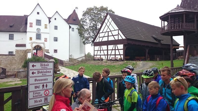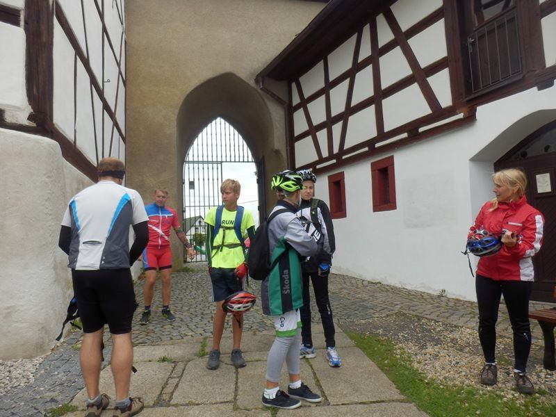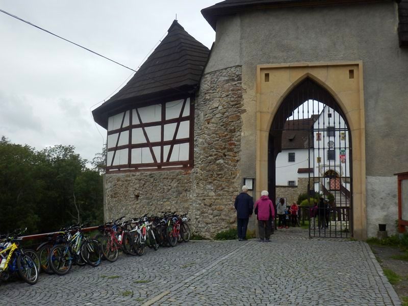 Cestou nás provází nevlídné počasí, fouká, mírně mží, ale to nás nemůže zaskočit. Parkujeme u hradu. Jak to vypadá, když někde zastavíme, si můžete prohlédnou na fotografiích, ale až budu mít čas je zpracovat. Míříme k prohlídce. Vypadá to, že dnes jsme na hrad zavítali pouze my a menší skupiny německých důchodců. Když nás sledují, trochu nevěřícně kroutí hlavou. Asi nechápou, proč ty děti v začínající zimě jezdí na kole. Současných 12 stupňů celsia je pro cyklistiku ideální. Byli jsme tady na začátku prázdnin, bylo 35 ve stínu, pralo slunce a nic příjemného to nebylo.