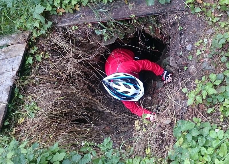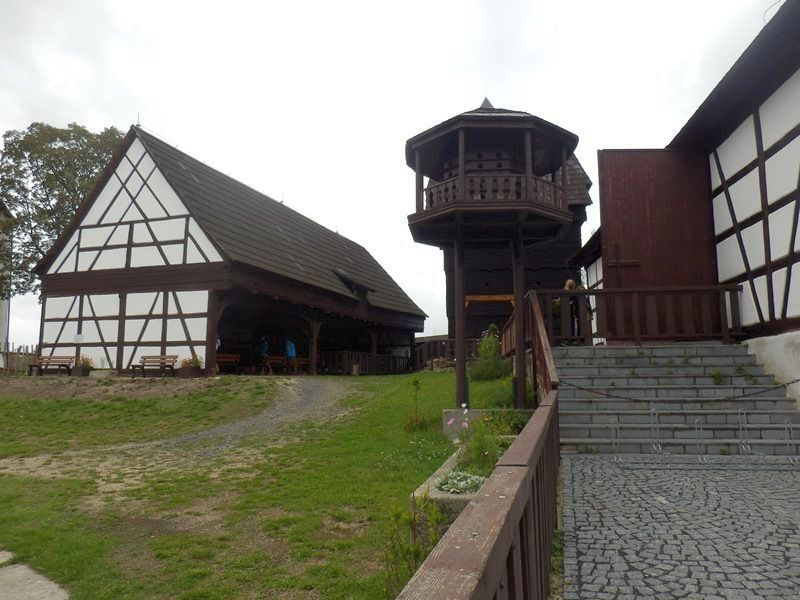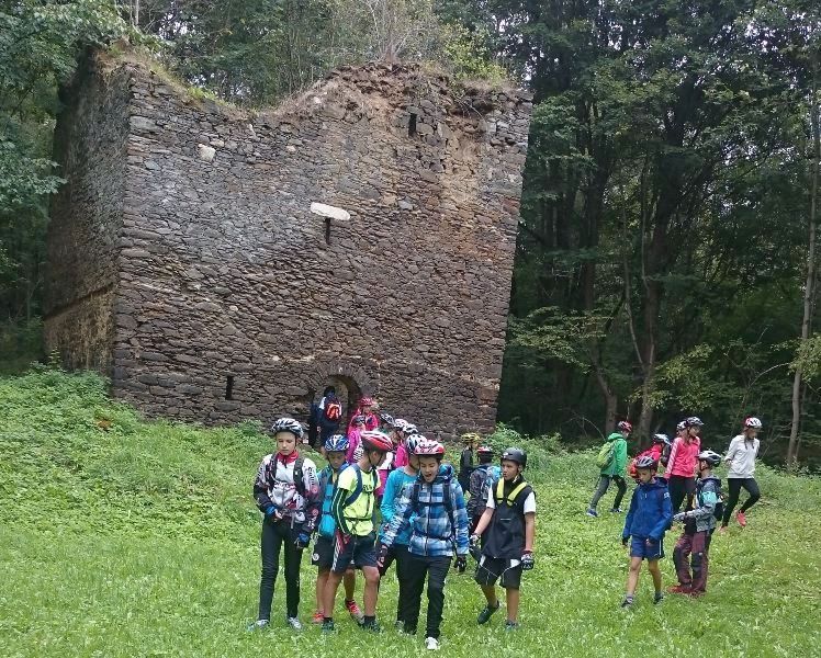 O půl desáté vyrážíme směr Komorní Hůrka. Cestou se zastavujeme u miniaturní zříceniny tvrze Pomezná. Děti prochází zbytek tvrze, ti statečnější nebo zvědavější prolézají sklepením v délce asi 5 metrů. Jedním otvorem tam, druhým ven. Při odjezdu po pár stech metrech Kryštofovi upadla šlapka. Šroub v nedohlednu. Vrací se pěšky s Markem na Dubinu. My pokračujeme rychlým tempem k sopce.