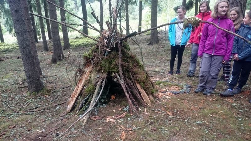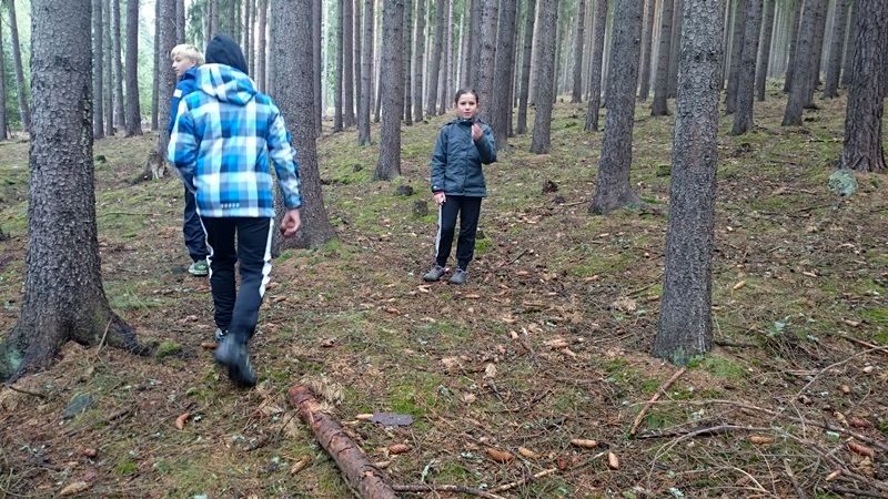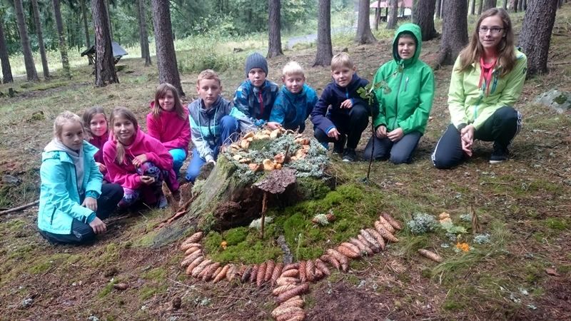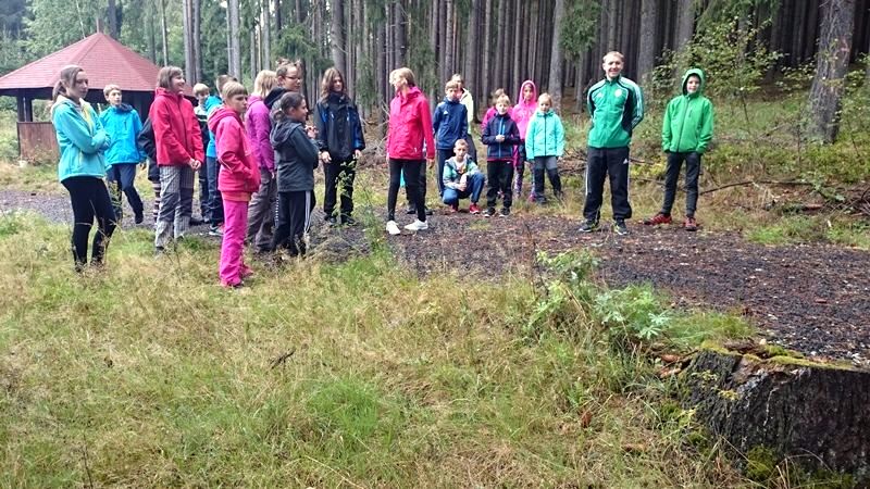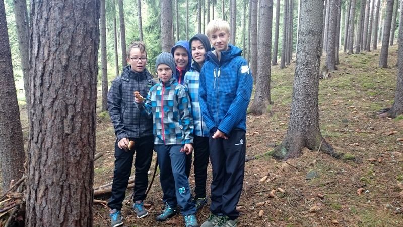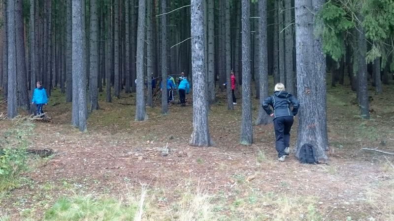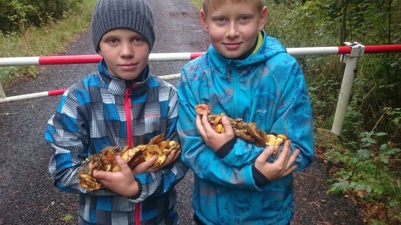 Špatná zpráva dne - počasí. Je zataženo, drobně mží, občas přijde vydatnější přeprška. Co s nimi ? Myslím s vašimi dětmi. Po chvíli rozhodování vítězí náhradní varianta. Jde se do lesa, tam přece neprší. Skupina s instruktory a paní učitelkou vyráží do okolních hlubokých lesů zvaných Smrčina. Při vstupu do lesa se v některých nejmenovaných jedincích probouzí houbařská vášeň, hned jdou po nich. Marně se jim snažíme vysvětlit, že nevíme co s nimi. Naštěstí to není takové jako loni, ale začínají růst. Hlavně klouzci, ale našli i několik krásných hřibů. Snad není letošní houbařská sezóna ztracena.