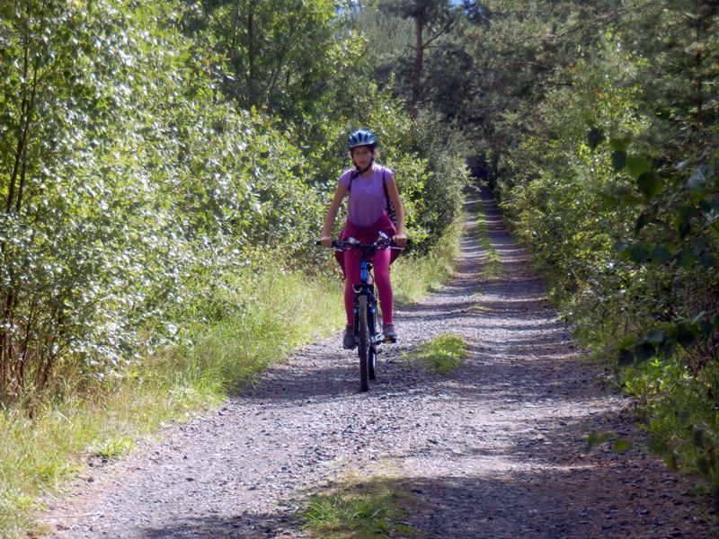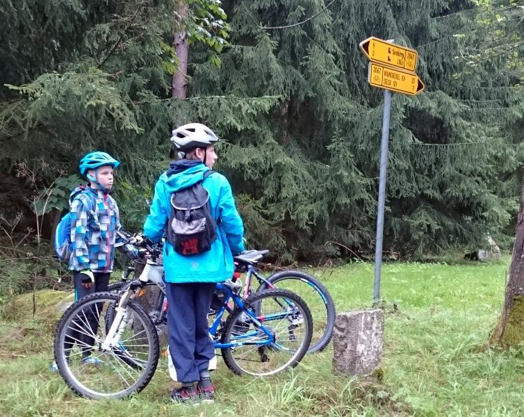 Prodloužený polední klid do půl čtvrté. Za okny svítí sluníčko a láká k projížďce. Kryštofovi půjčujeme kolo z místních zásob. Vedení se ujímá Ondra. Cesta po signálce od Dubiny nad Libou. Horská prémie první kategorie, cesta v lese úžasná. Jako vždy Ondra nevolí klasická řešení, míjí odbočku na Libou a pokračuje ke Třem rybníků a dále do osady Podílná. Tam nás začíná tlačit čas, chceme z pošty poslat pohledy. Otáčíme a opět hlava nehlava pádíme njkratší cestou po louce do Libé. Druhá crosscountry v jednom dni. U pošty jsme včas s 10 minutovou rezervou. Nezbytný nákup a pak již zpátky na rotu. Máme za sebou dalších 11 km.