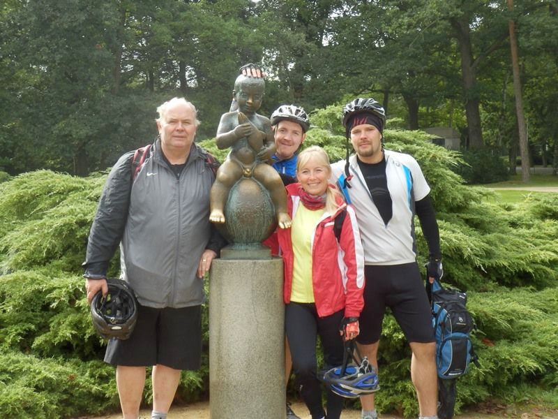 Příprava na celodenní výlet. Zabalit vše potřebné, s sebou balíček na cestu. V 9:30 vyjíždíme. Počasí vypadá nadějně, po ránu je mlha, ale snad se to vylepší. Trasa je pečlivě naplánována. Ondra jako vodič. Jedeme, jedeme všichni natěšení, nejprve po signálce. Cesta vytvořená pro potřebu ochranu hranice. Krásná, přímá absolutně bez respektu k nějakým výškovým poměrům . Chvíli jedete po rovince, potom prudký padák, pak zase prudké stoupání. Pohoda. Po prvních třech kilometrech se ukazuje, že pečlivě naplánovaná trasa se zhroutila. Jsme úplně jinde než jsme chtěli být, máme mířit na Františkovy Lázně, ale jsme na hranici Chebu. Chybička se vloudila, provádíme korekci dráhy a nyní již správně pokračujeme. Míjíme nejmladší sopku Komorní Hůrku, té se budeme věnovat zítra. Jedeme kolem soukromého sanatoria, kolem něhož se prohání desítky daňků, asi součást léčby. Před jedenáctou vjíždíme do prvního cíle dnešní cesty Františkových Lázní. Za pár minut jsme na kolonádě, v pěší zóně spořádaně kráčíme pěšky.