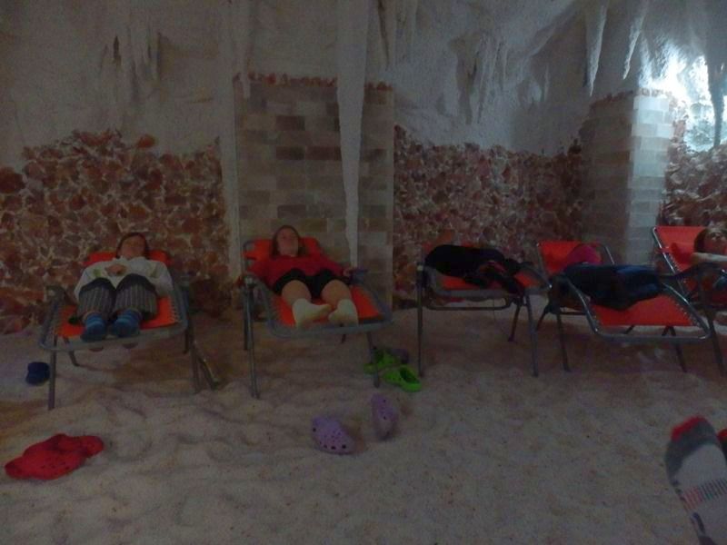 Po večeři zájemci relaxují v solné jeskyni, postupně se v ní vystřídá několik skupinek. Další část sleduje na videostěně film. Někteří odpočívají na pokojích, část už zase buší do stolu na stolní tenis.