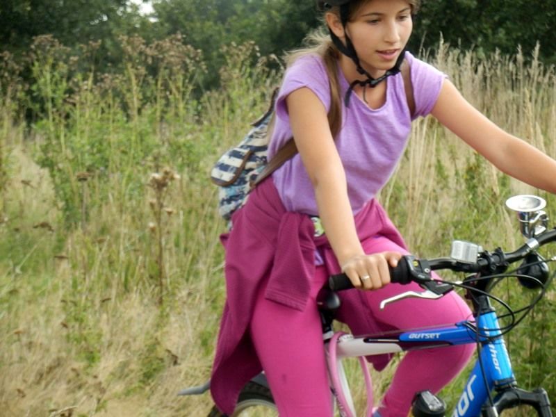 Vracíme se po žluté značce do Libé, nejprve prudký sjezd od hradu, potom prudké stoupání, následuje rovinka zarostlou polní cestou kolem rybníků. Kdyby tolik nefoukalo proti, byl by to nádherný zážítek. Některé dívky musí při tom terezínu usilovně šlapat, aby je vítr nezvedl jako drak do oblak. Kolem páté jsme zpátky na Dubině. Všichni OK, jeden drobný pád, již ošetřený, v nohách prvních 14 km.