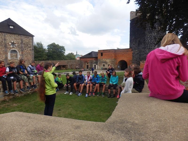 Po odpočinku, rozchodu a nákupech, trochu vlastivědy u Špalíčku a nezbytné focení. Pokračujeme na chebský hrad. Jedná se o jednu z nejstarších a současně nejvýchodnější císařských falcí v Evropě. Máme štěstí za pár miínut probíhá komentovaná prohlídka. Děti se dovídají spoustu zajímavostí. Hrad je nenápadný, ale návštěva stojí za to. Každého zaujme něco, některé útrpné nástroje a vpravdě naturalistický popis jejch používání, některé Černá věž postavená ze sopečného materiálu Komorní Hůrky, jiné zase dobře vybavená zbrojírna...