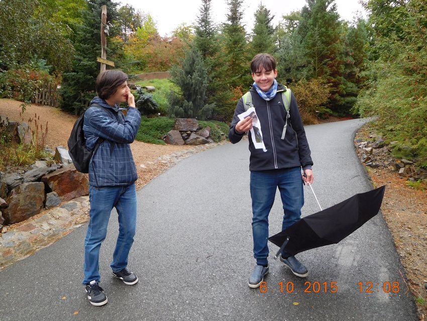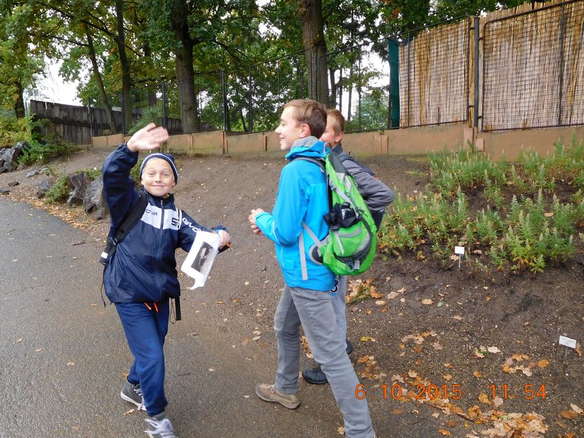 Od parkoviště jsme se vydali krátkou procházkou směrem ke vchodu do ZOO. Společně jsme prošli trasou vlevo do kopce až ke statku Lüftnerka. Tady se žáci rozdělili do skupin po čtyřech a dostali pracovní list s otázkami. Pak už následoval rozchod a plnění úkolů. Důležité bylo pozorně sledovat otázky. Kdo pozorný nebyl, hodně se naběhal. Zjistil např., že přehlédl otázku, která se týkala jelena. Ten má výběh nahoře na kopci. No a žák to zjistil, když už sám byl v ZOO dole. Nezbylo tedy než se vrátit, jinak by jednička za pracovní list byla v ohrožení.