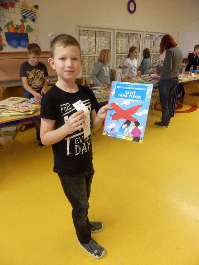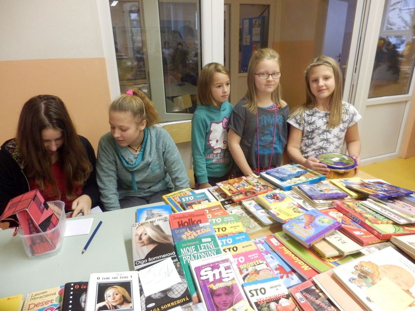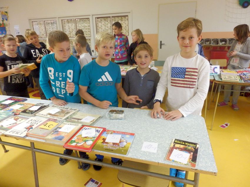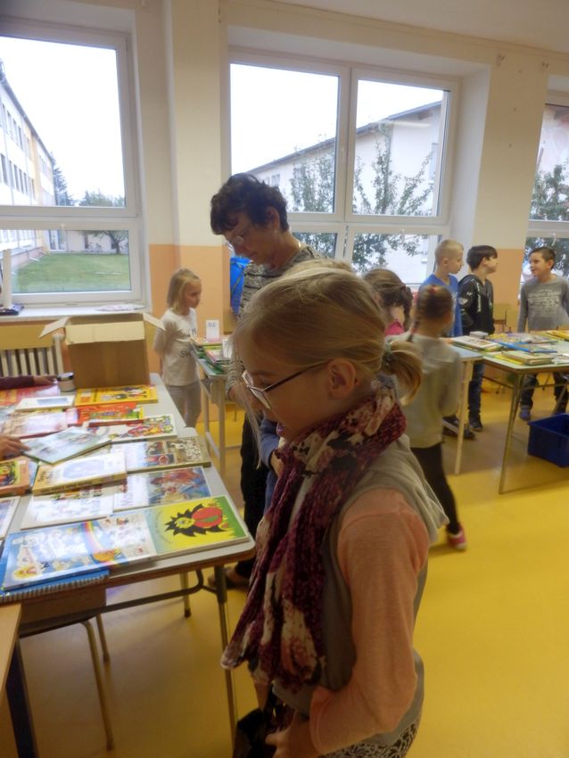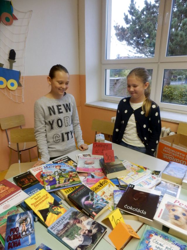 Ve středu 19.10.2016 proběhl na naší škole tradiční knižní bazárek. Dnes nakupovali žáci I. stupně, zítra budou mít možnost nákupu žáci II. stupně. Děti přinesly k prodeji dětské knihy, encyklopedie, popř. komiksové knihy, kterým již odrostly a nabídly je k prodeji za symbolické ceny.