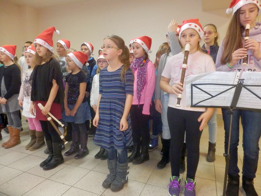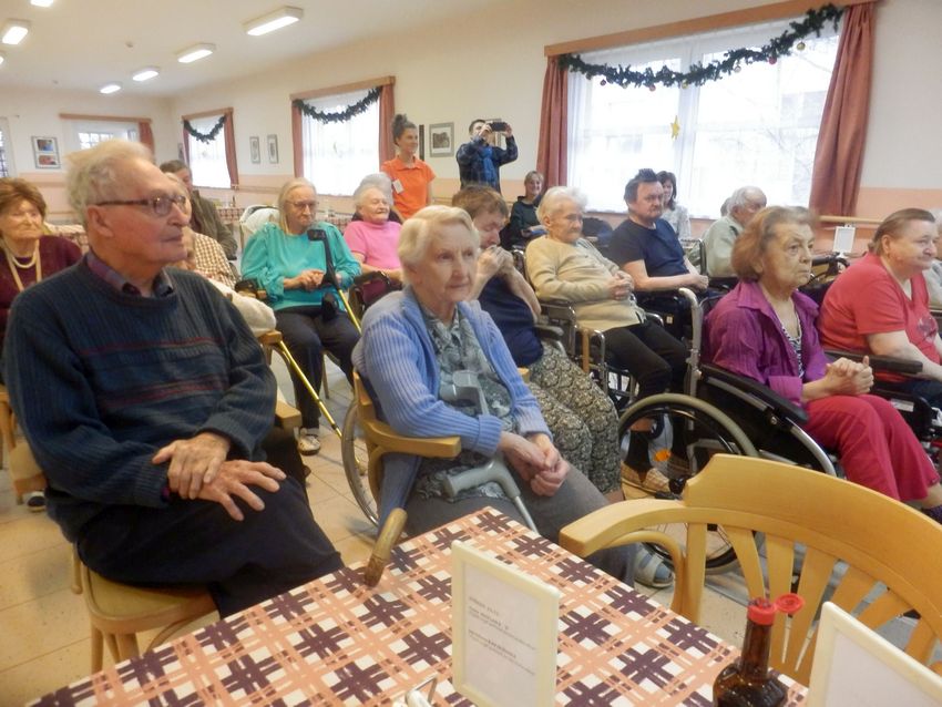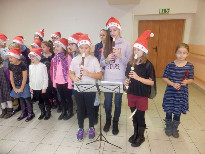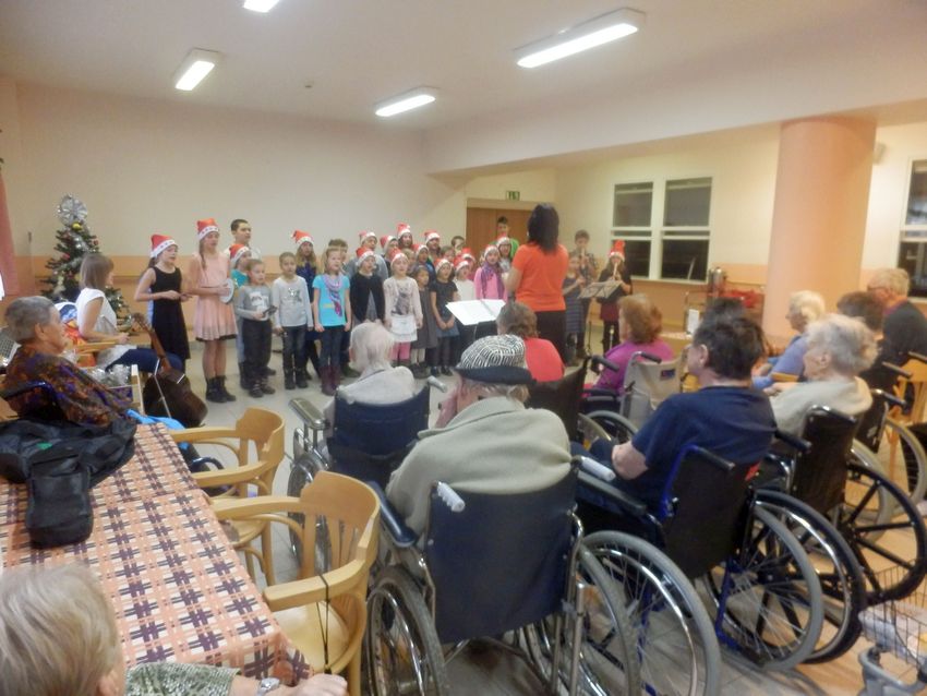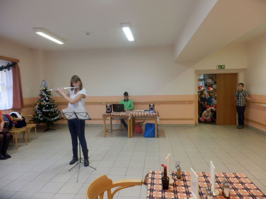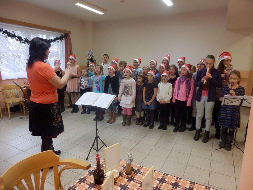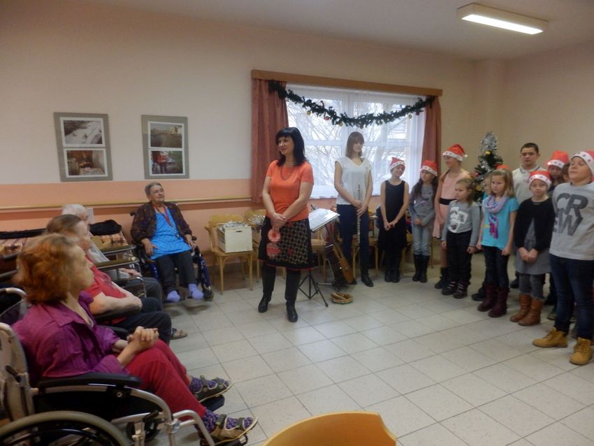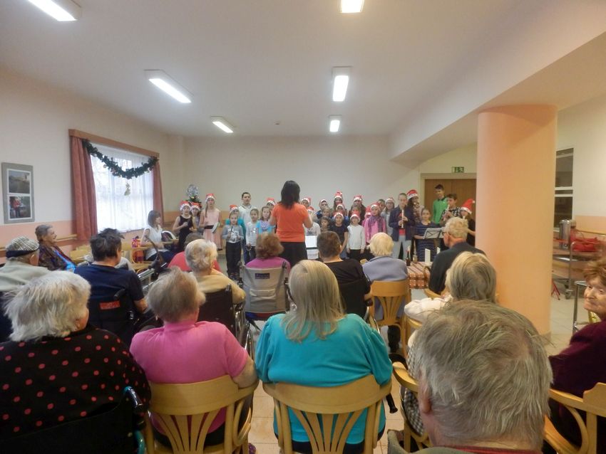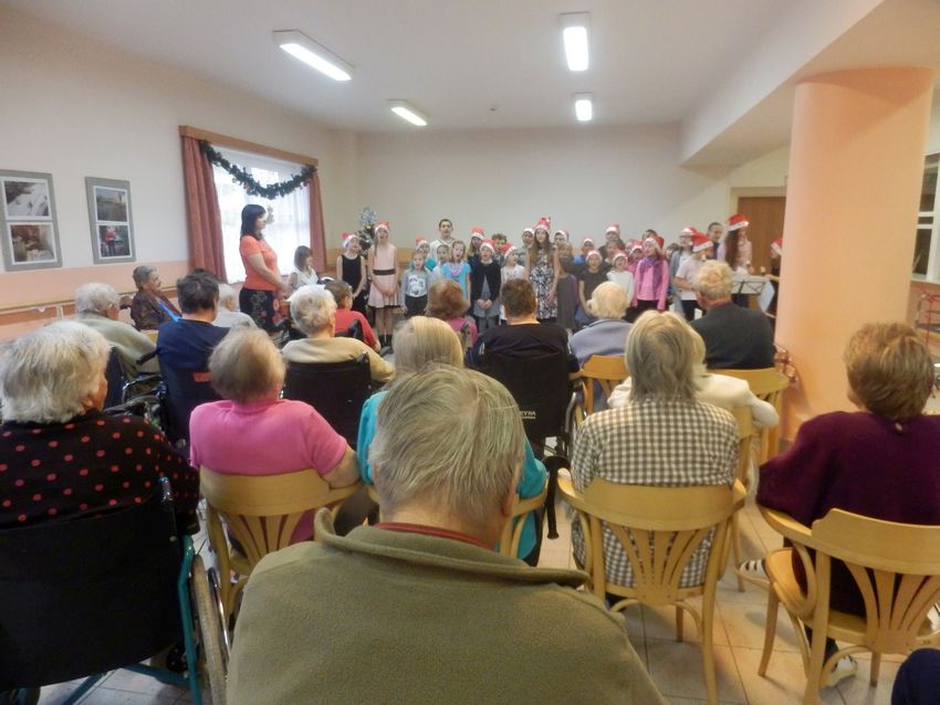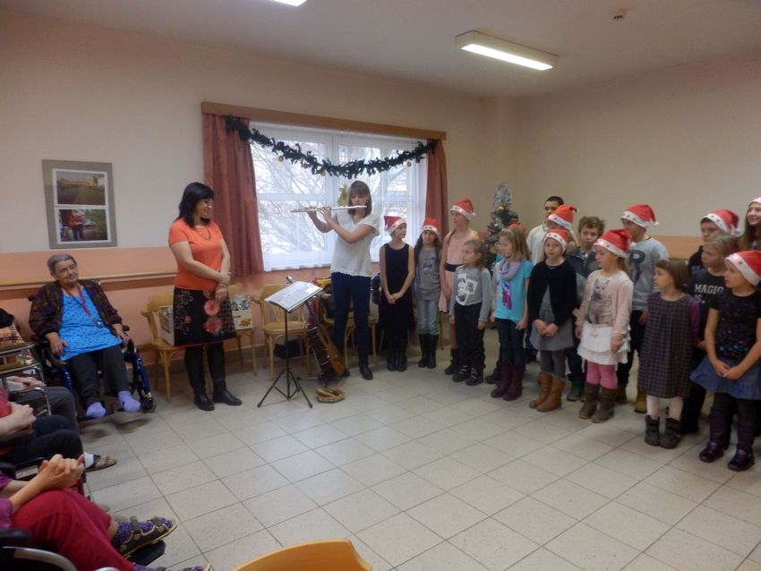 Pod vedením sbormistryně, paní učitelky Andrey Frašové, zahrály na flétny, zazpívaly koledy a písně s vánoční tematikou. V závěru předaly obyvatelům Domova dárečky. Snad je potěšily a přispěly k vánoční atmosféře a pohodě.