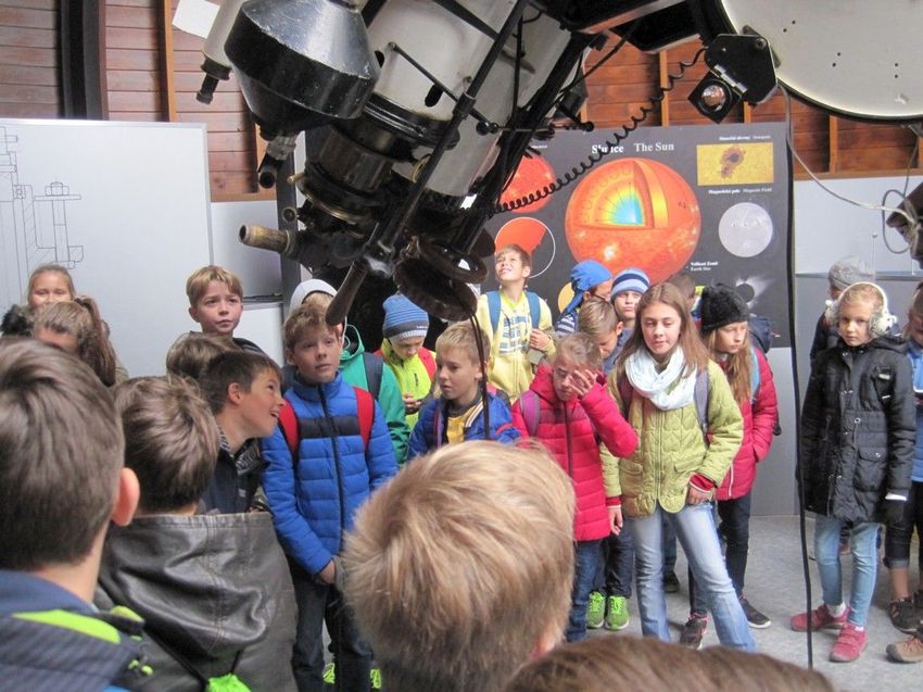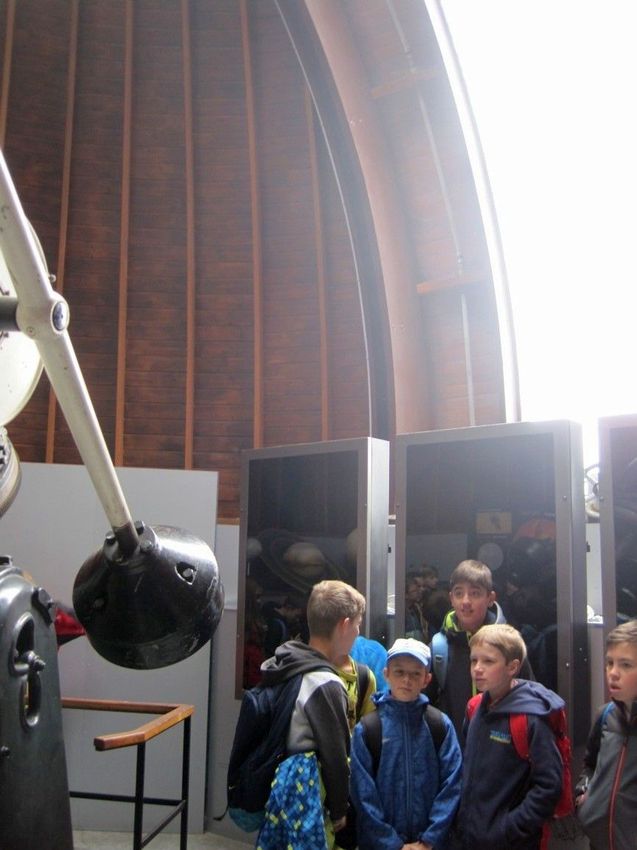 Po skončení projekce proběhla diskuse s astronomem nad dotazy žáků, který dokázal přizpůsobit svůj výklad věku a jejich znalostem . Následovala návštěva kopulí s demonstrací práce s přístroji (manipulace s dalekohledem, demonstrace zvětšení atd.). Těšili jsme se i na pozorování oblohy dalekohledem, ale nepříznivé podmínky počasí nám to bohužel neumožnily.