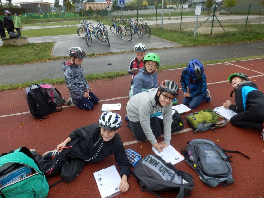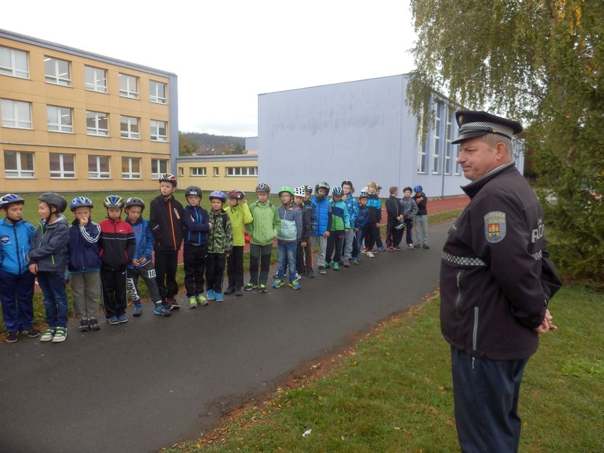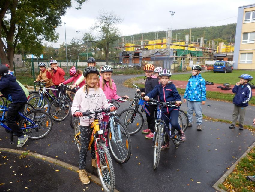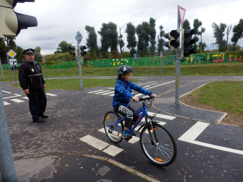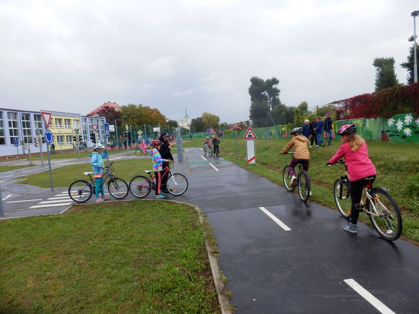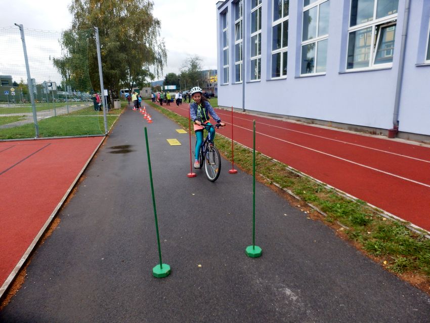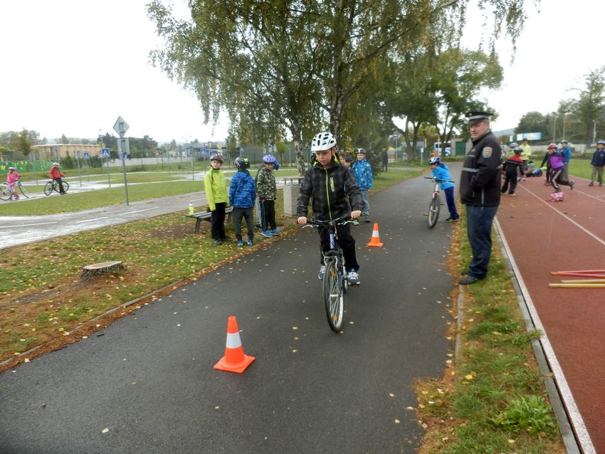 Žáci 5. A a 5. B si pod odborným vedením policistů vyzkoušeli jízdu zručnosti a jako skuteční cyklisté prožili konkrétní dopravní situace v prostředí modelového silničního provozu.