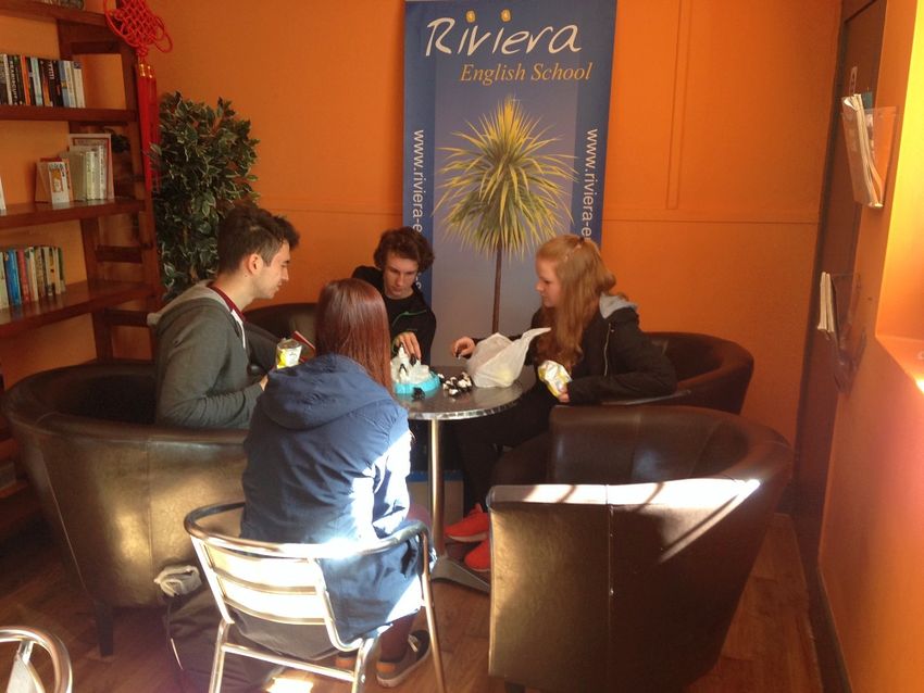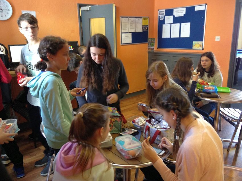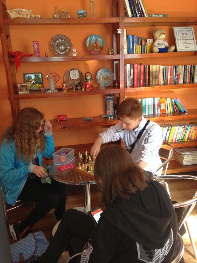 Dopoledne se odehrává ve znamení školy, kam rodiny děti přivážejí. Jsou rozdělené dle úrovně do 2 skupin, výuka trvá 3 hodiny (1 h - 60 minut), 20 minut je dlouhá přestávka. I ve zdejší škole dbají na bezpečnostní opatření, jsme poučeni o BOZ, procházíme celou budovu, jsou nám ukázány nouzové východy, playground, herna, knihovna, místnost, kde se svačí… Ve škole nezvoní, ale všichni jsou ve svých učebnách včas a učí se, panuje zde naprostý klid. Pozdravit nás přichází pan ředitel a zaměstnanci školy. Kromě nás jsou tu ještě němečtí studenti. O přestávce se všichni rojí jako včely, škola se stává opět hučícím úlem – po sdílení prvních dojmů vytahují děti svačiny, usazují se do křesílek nebo k PC, která jsou volně přístupná pro školní práci J. Někteří neodolají nabídce automatů a ochutnávají brambůrky, čokoládky, sušenky… Po ukojení hladu někteří hrají stolní fotbal, jiní zkoušejí karban, zbytek se jde provětrat po starých točitých schodech na hřiště – tedy hřišťátečko. Nezvoní, ale všichni jdou do tříd a školou se rozhostí opět klid.