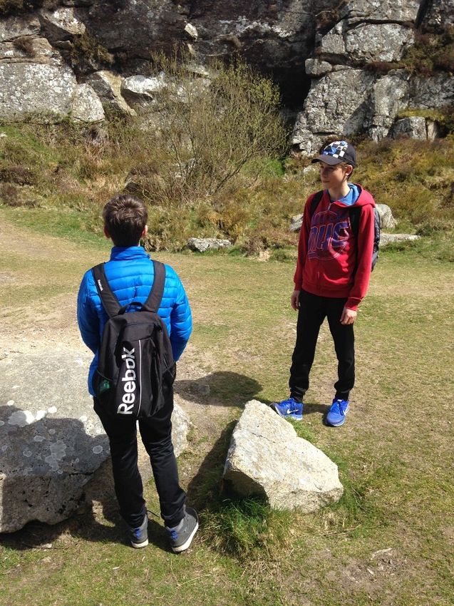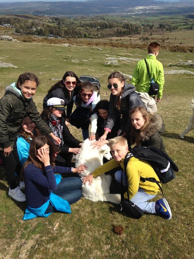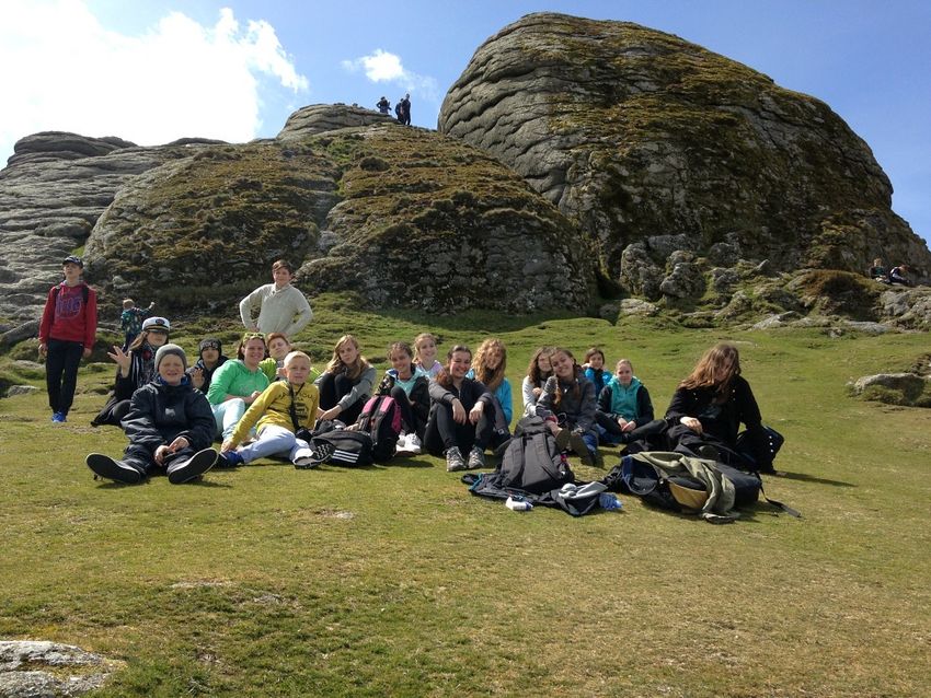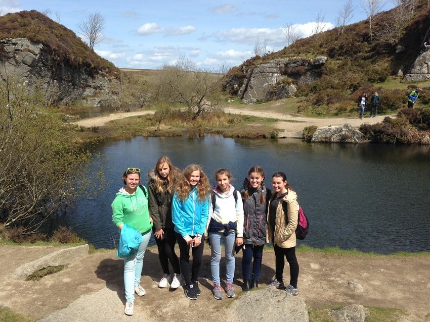 Zvonek (ne) zvoní, škola končí, po schodech se běží…ven, štrúdl Rudná-Liberec odchází do autobusu, nasedáme a vyrážíme směr národní park Dartmoor. Naším cílem je potkat se se psem baskervillským, obdivovat přírodní krásy, dýchat čerstvý vzduch, hýbat se a neukopnout si palec, vynechat nemůžeme svačinu. Po hodině jízdy nás autobus vyklápí na úpatí kopce. Za neobvykle hezkého počasí šplháme nahoru, někteří popadají sotva svůj dech, ale nakonec zdoláváme všichni. Námaha stojí za to, otevírají se nám výhledy do místní krajiny, pes baskervillský zatím v dohledu není. Ten, kdo měl dost odvahy, mohl pod dozorem vylézt i na žulovou skalní věž Heytor. Kdo zůstal pod skalkou, válel sudy, také dobrá volbaJ.