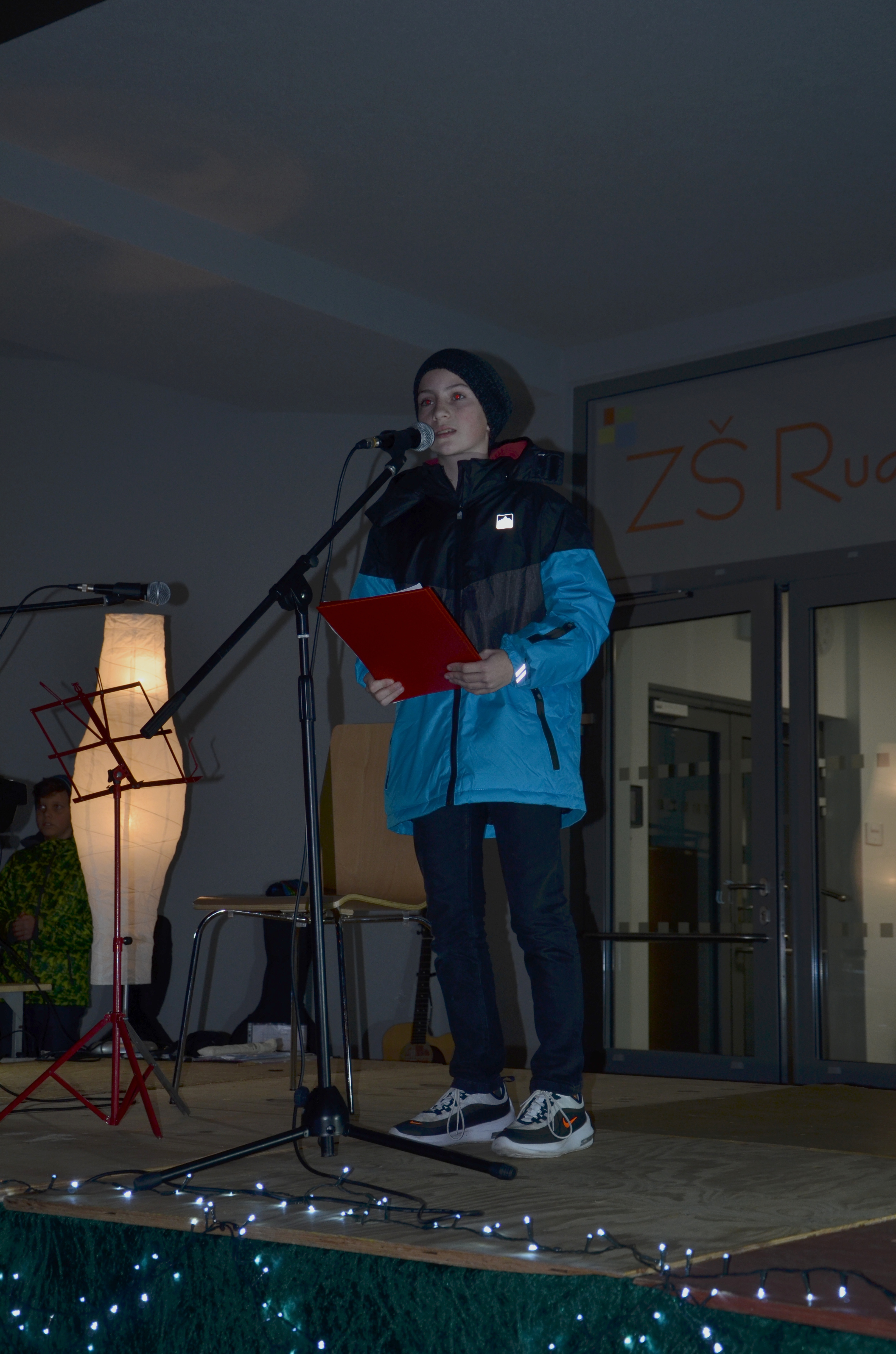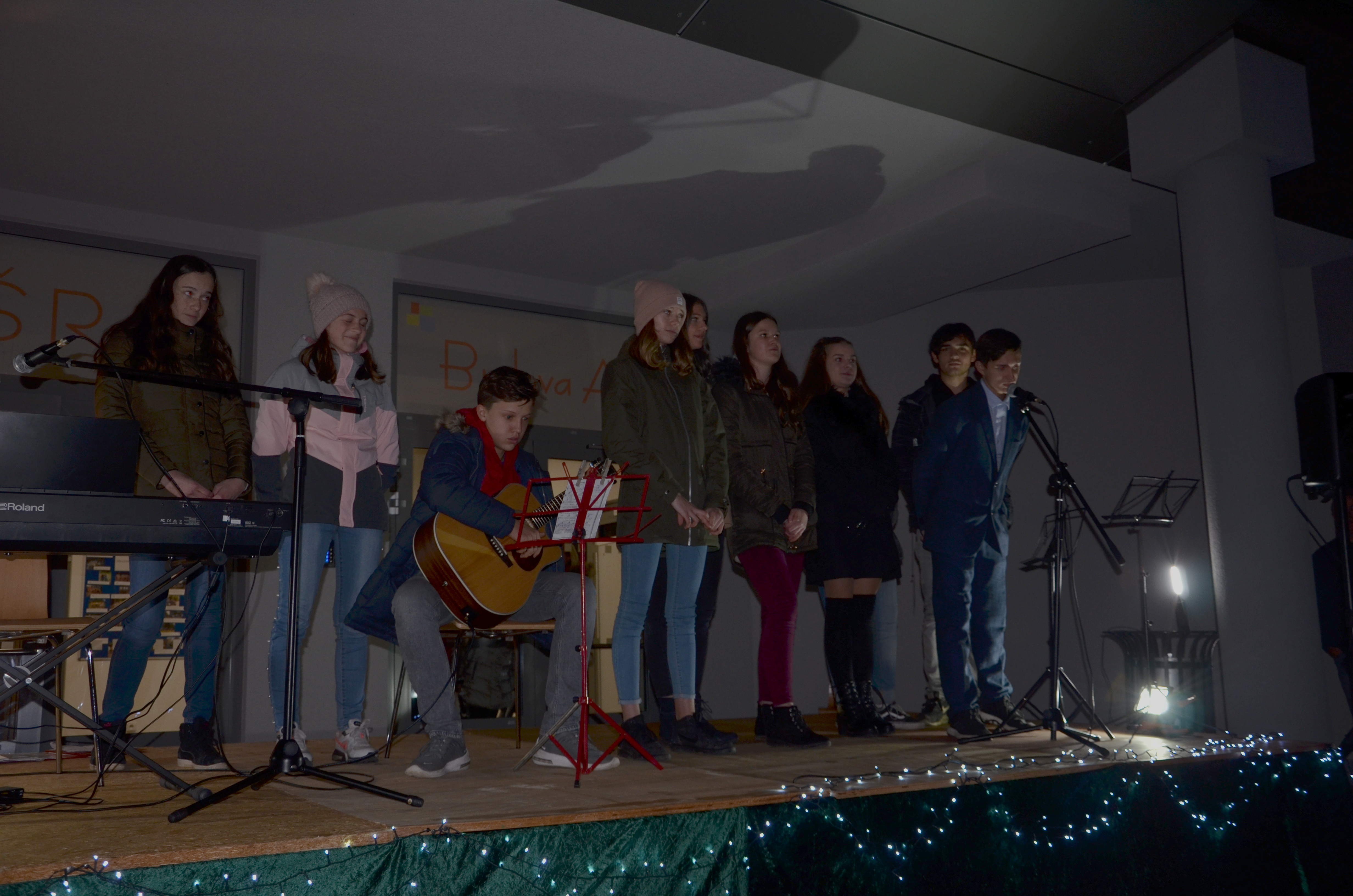 Pásmo zahájila jedna z písní Karla Kryla Anděl v podání školního sboru Taktus. Společně jsme si mohli zazpívat také Náměšť (děti z 5. B), Bratříčku zavírej vrátka a Nechte zvony znít (9. B). Již tradičně se zapojily i flétny s písní Morituri te salutant, zazněla i Karavana mraků (V. Slepička ze 3.A) a báseň Jiřího Žáčka Má vlast (O. Musil ze 7. C). Celý koncert uzavřela hymna pádu režimu, Modlitba pro Martu, která se stala jedním ze symbolů nejen Pražského jara 1968, ale později i Sametové revoluce v roce 1989. Tehdy zazněla v podání Marty Kubišové během demonstrací na Václavském náměstí, nyní ji zazpívala Štěpánka Barešová ze 6.C.