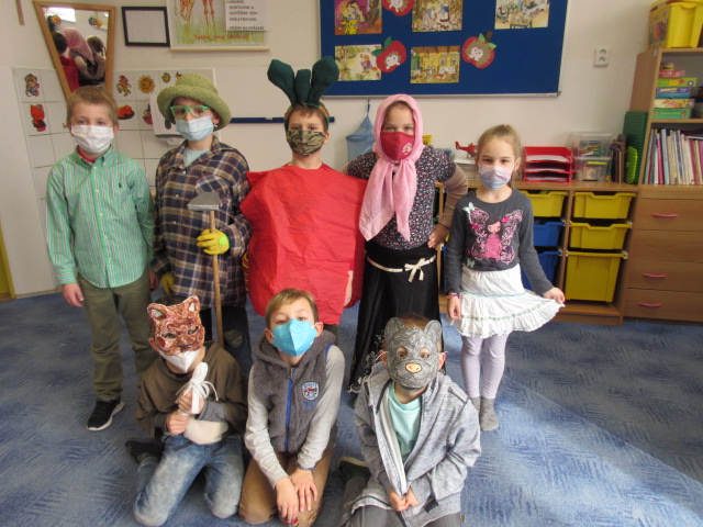 Do divadla nemůžeme?! My ano, ale jak ... . V rámci seznámení s povoláním si děti zkusily roli herců. Rozdělily se na dvě skupiny a připravily známou pohádku. Vytvořily kostýmy, nacvičily text a paní učitelku pozvaly jako hlavního diváka. A nebylo to jednoduché! Musíte si pamatovat text, správně se natočit k divákům, mluvit nahlas ... . Ke všemu nám onemocněl vypravěč, veverka Terezka musela pomoci a zapojena byla i paní vychovatelka. Myslím, že se to dětem moc povedlo, ... . A musíte uznat, že na prvňáčky to děti zvládly bravurně! A kdo ví, jaké povolání v budoucnu si děti vyberou ... a jak vůbec bude ta budoucnost vypadat? Známe i herce, co se stal prezidentem ... . Vychovatelka ŠD Alina Chornomor